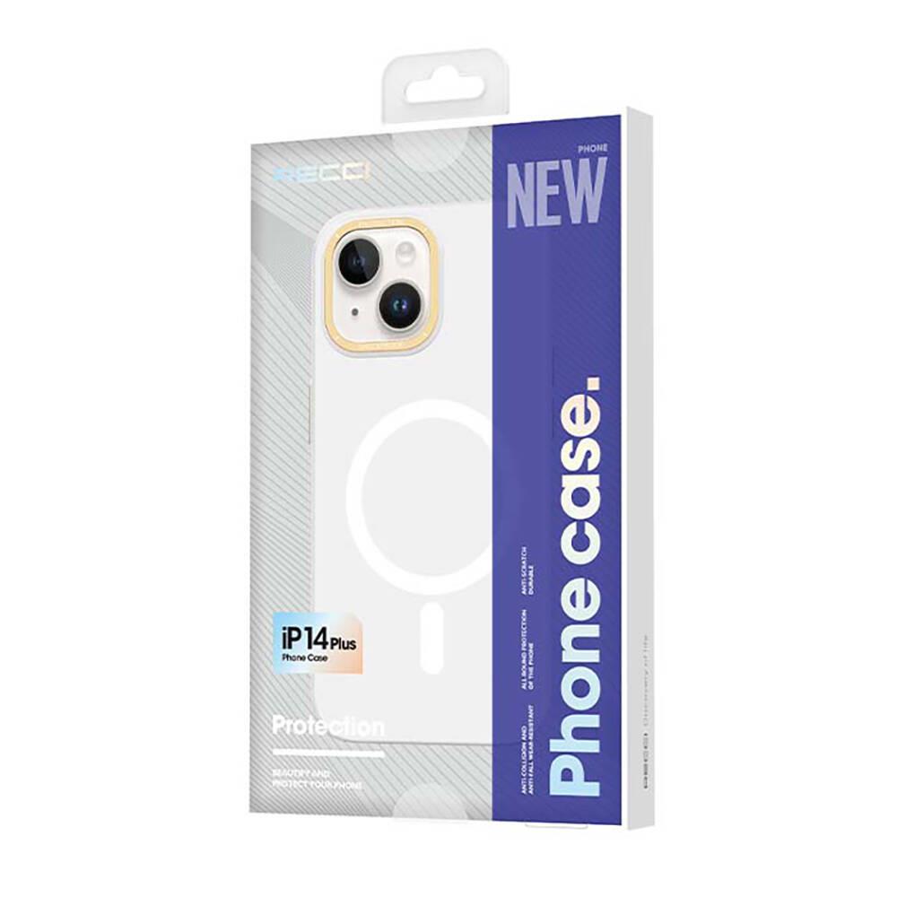 iPhone 14 Plus Kılıf Magsafe Şarj Özellikli Metal Kamera Çerçeveli Recci Glaze Serisi Kapak