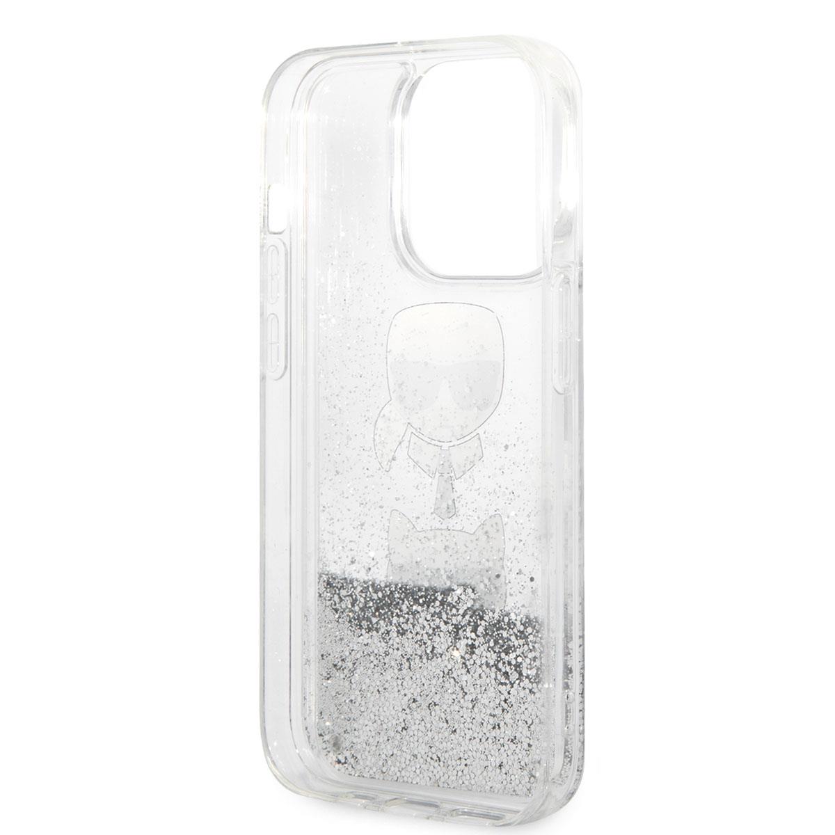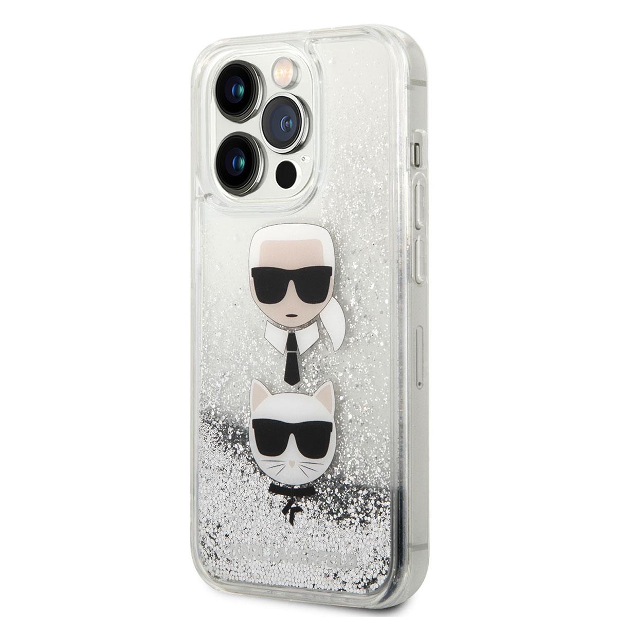 Apple iPhone 14 Pro Kılıf Karl Lagerfeld Sıvılı Simli K&C Head Dizayn Kapak