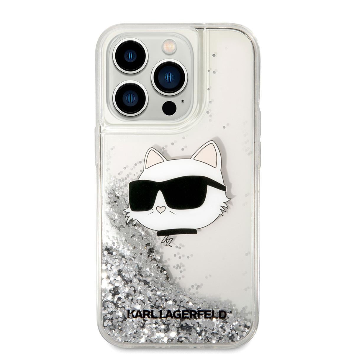 Apple iPhone 14 Pro Max Kılıf Karl Lagerfeld Sıvılı Simli Choupette Head Dizayn Kapak