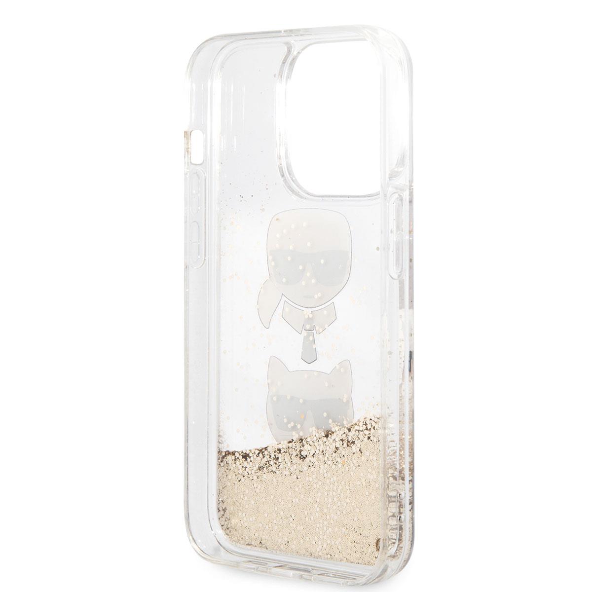Apple iPhone 14 Pro Max Kılıf Karl Lagerfeld Sıvılı Simli K&C Head Dizayn Kapak