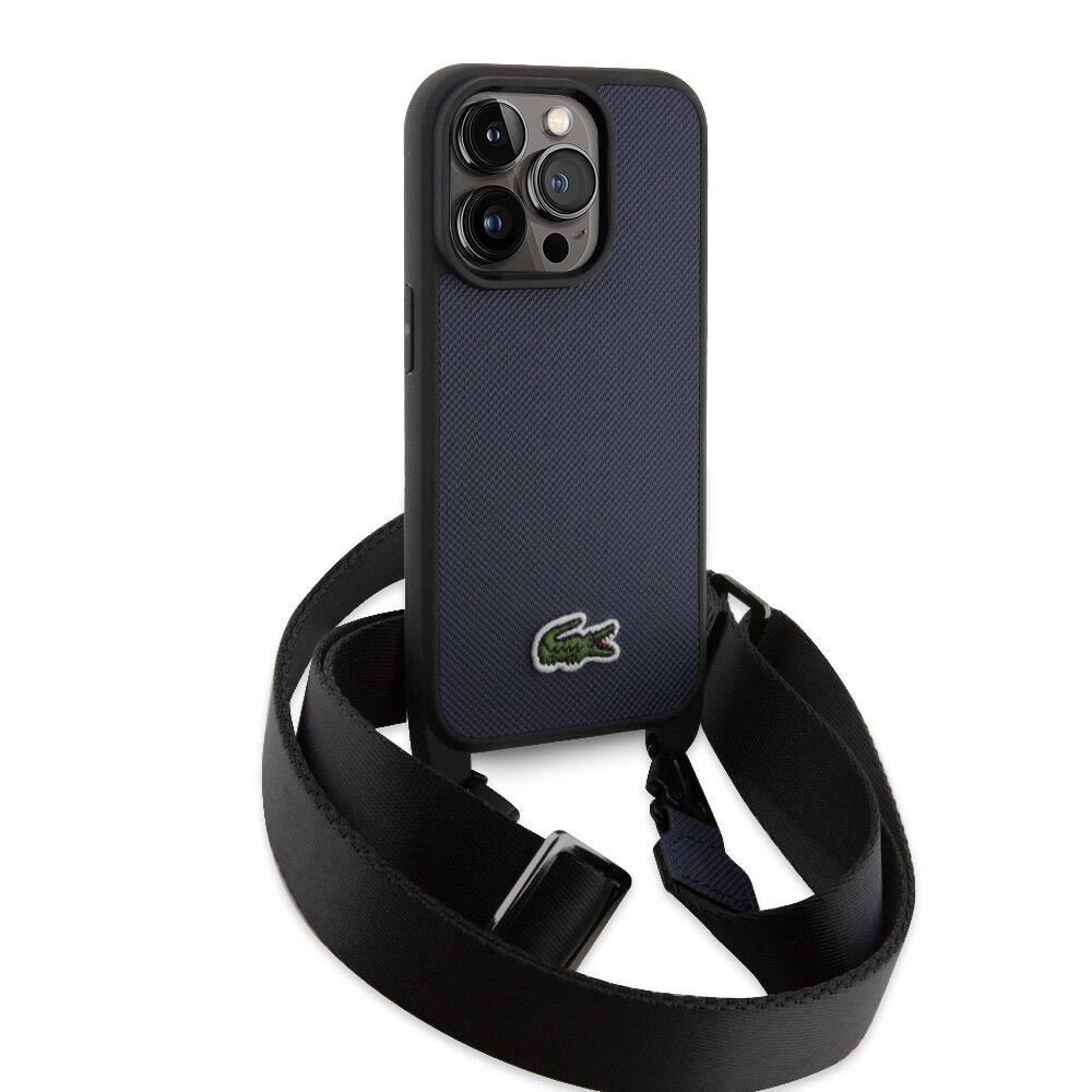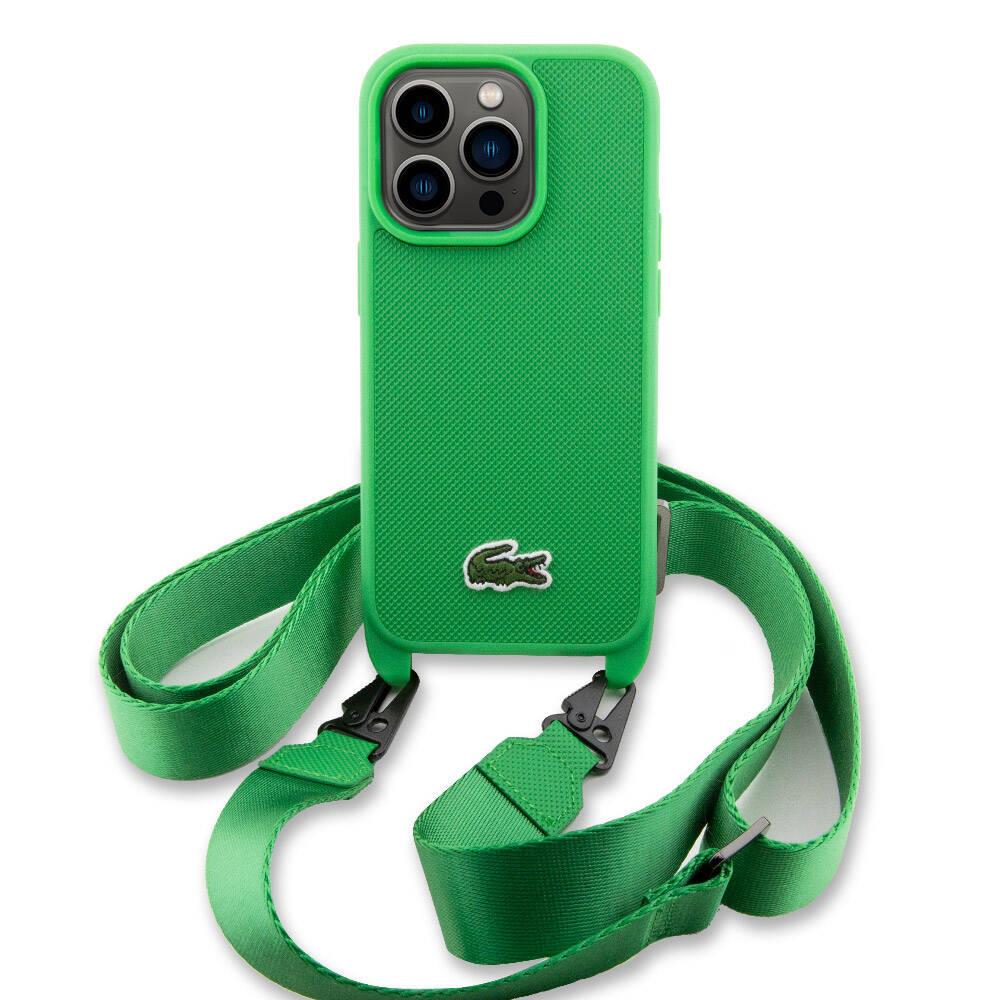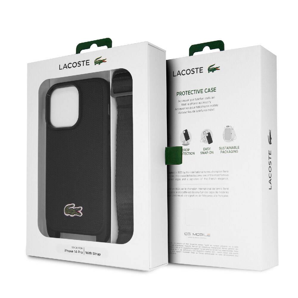 Apple iPhone 14 Pro Max Kılıf Lacoste Orjinal Lisanslı PU Pike Desenli Arka Yüzey Askılı İkonik Timsah Dokuma Logolu Kapak