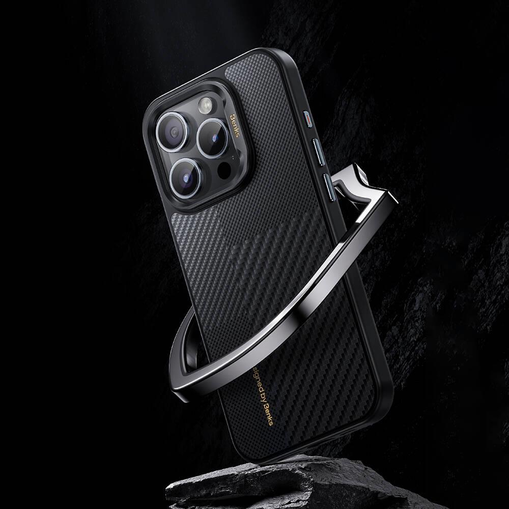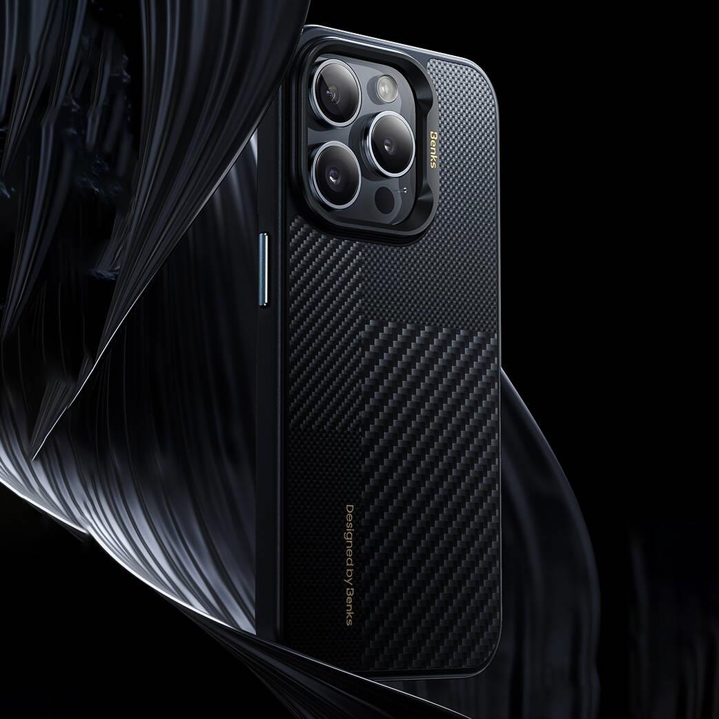Apple iPhone 14 Pro Max Kılıf Magsafe Şarj Özellikli Karbon Fiber Benks Montage Hybrid ArmorPro Kevlar Kapak