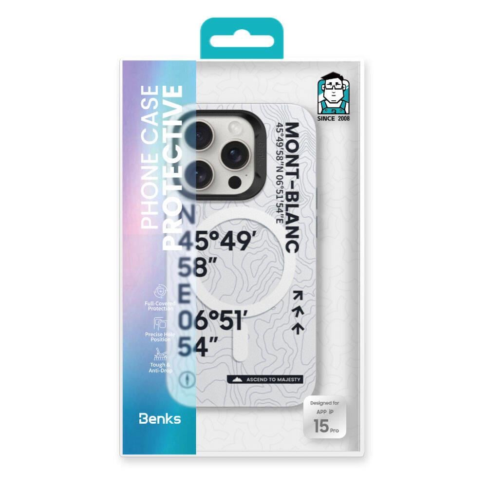 Apple iPhone 14 Pro Max Kılıf M-safe Şarj Özellikli Koordinat Yazı Desenli Benks Summit Serisi Kapak