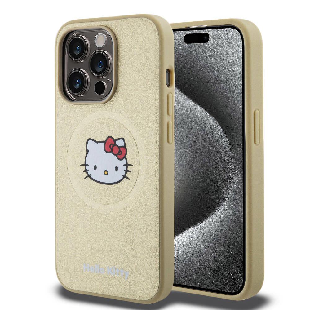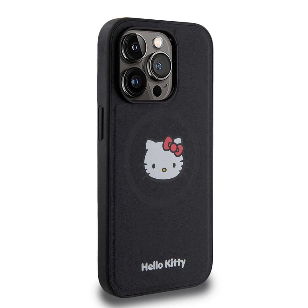Apple iPhone 15 Pro Kılıf Hello Kitty Orjinal Lisanslı Magsafe Şarj Özellikli Kitty Head Deri Kapak