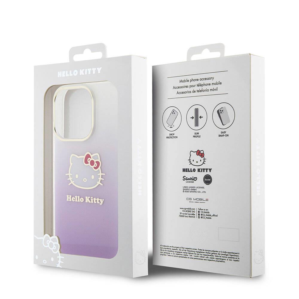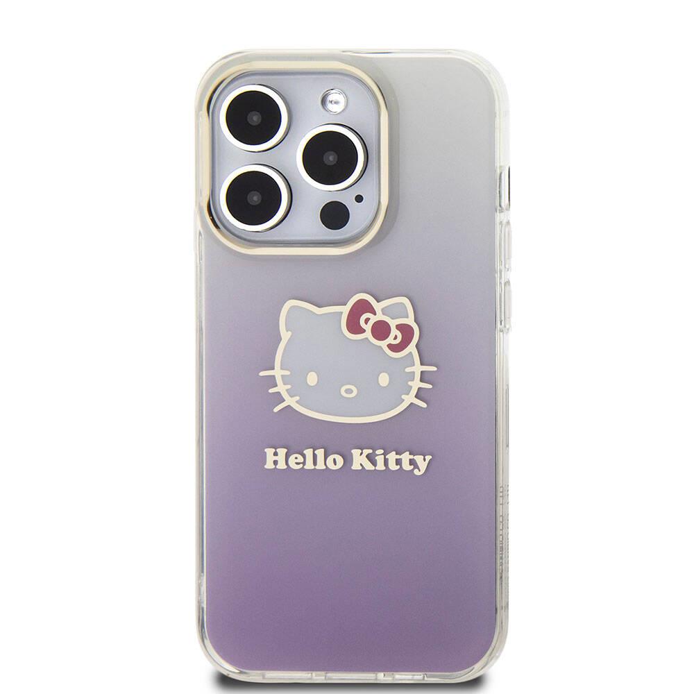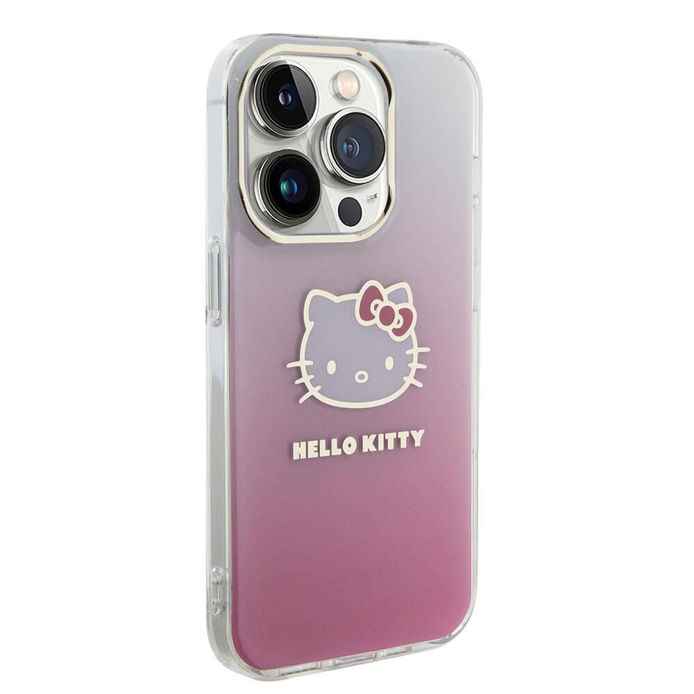 Apple iPhone 15 Pro Kılıf Hello Kitty Orjinal Lisanslı Yazı ve İkonik Logolu Elektroplating Kaplama Gradyan Kapak