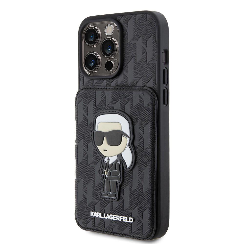 Apple iPhone 15 Pro Kılıf Karl Lagerfeld Standlı Kartlıklı Saffiano Monogram İkonik Metal Logo Orjinal Lisanslı Kapak