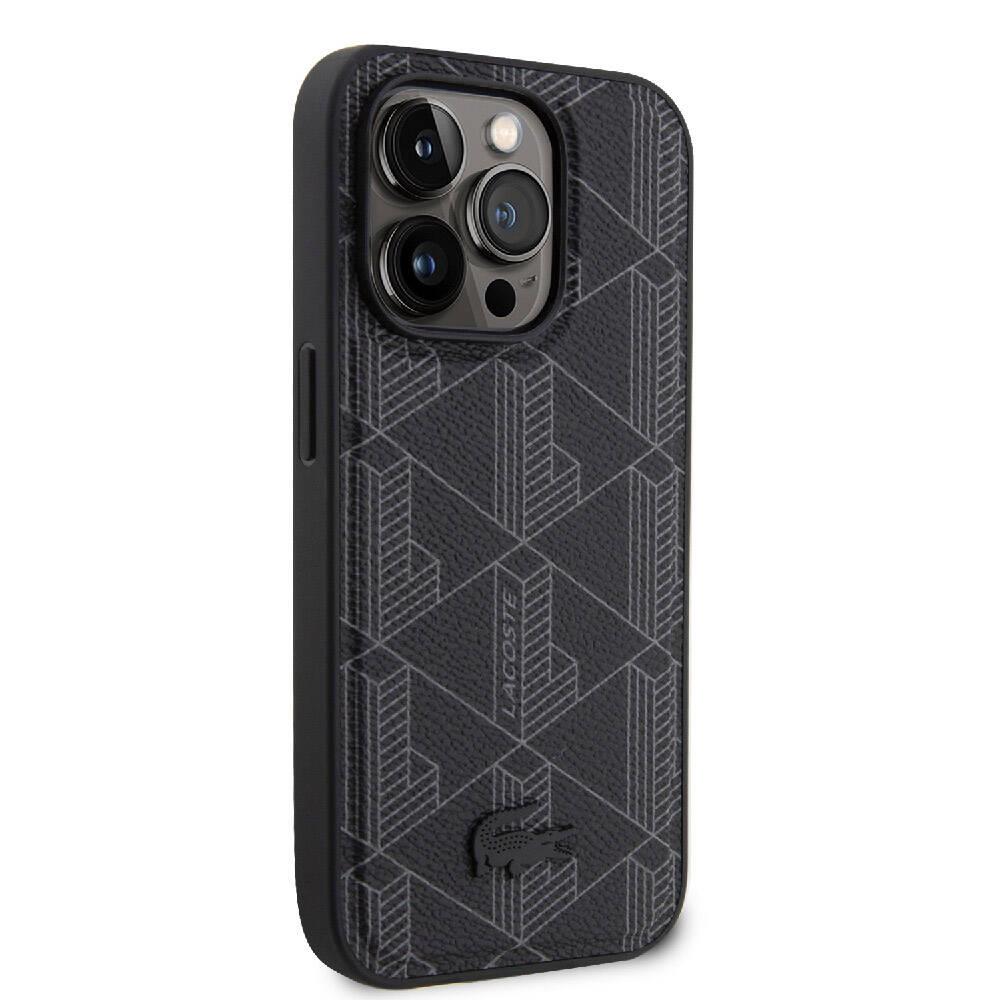 Apple iPhone 15 Pro Kılıf Lacoste Orjinal Lisanslı M-safe Şarj Özellikli PU Deri Görünümlü Karışık Monogram Desenli Kapak