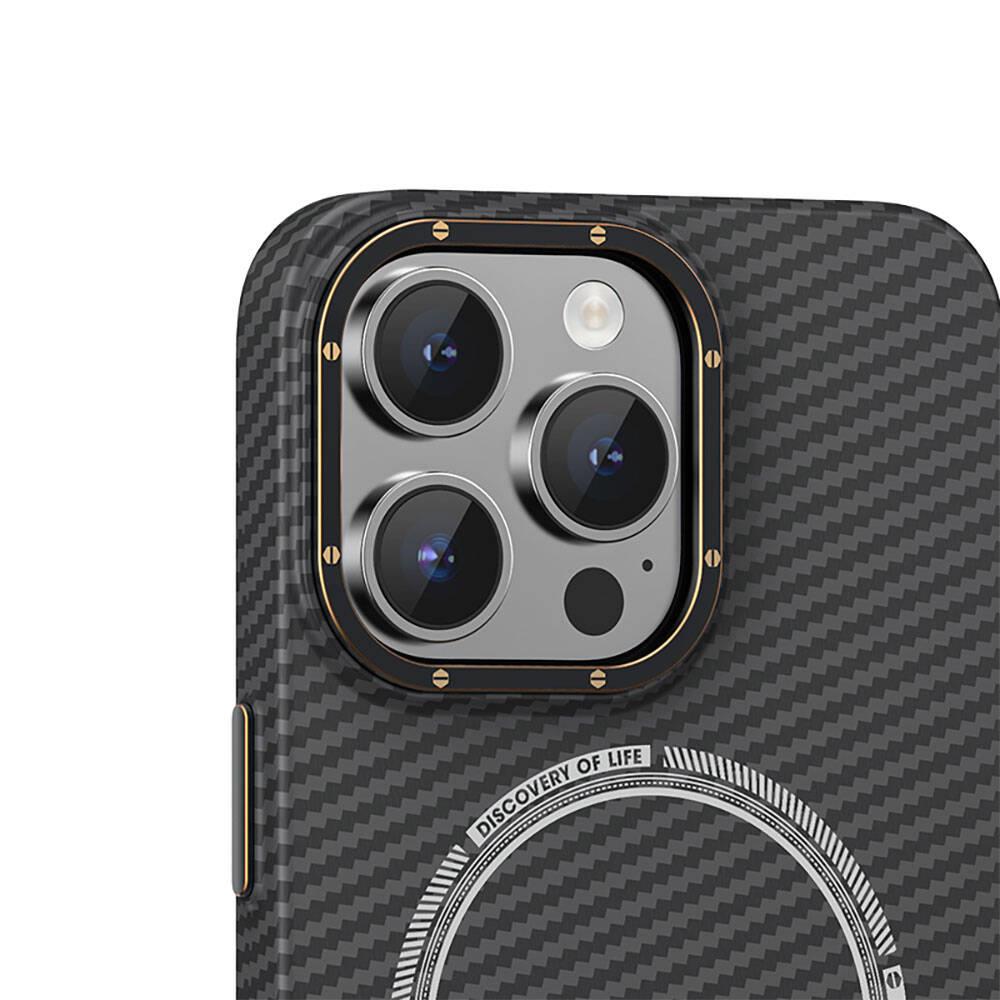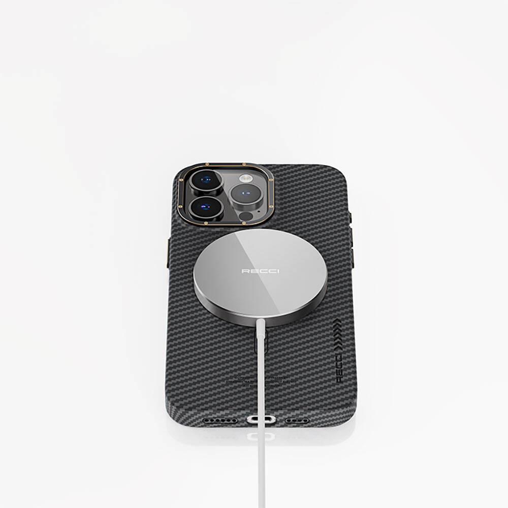 Apple iPhone 15 Pro Kılıf Recci Machinist Serisi M-safe Şarj Özellikli Magnetik Karbon Kapak
