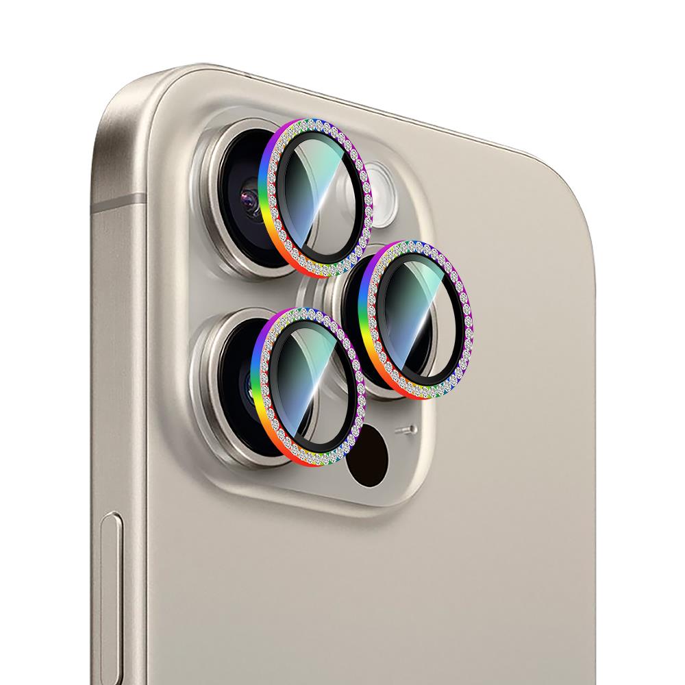 Apple iPhone 15 Pro Max CaseWorld Alloy Sparkling Diamond Serisi Taşlı Lens Koruyucu