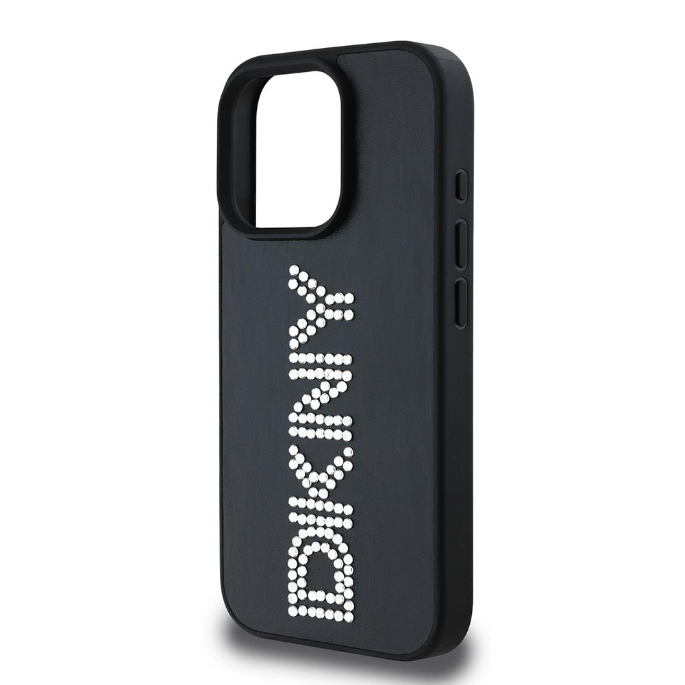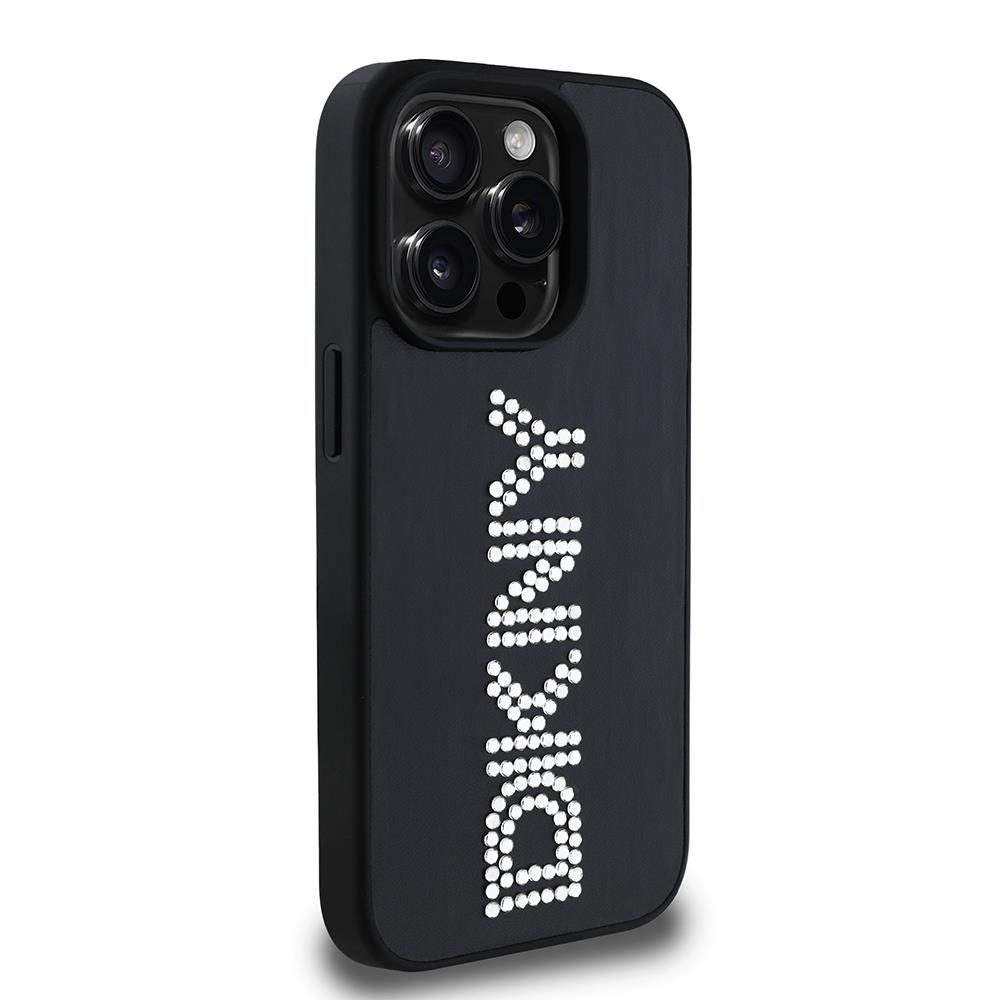 Apple iPhone 15 Pro Max Kılıf DKNY Orjinal Lisanslı Taşlı DKNY Yazılı Metalik Rhinestones PU Deri Kapak