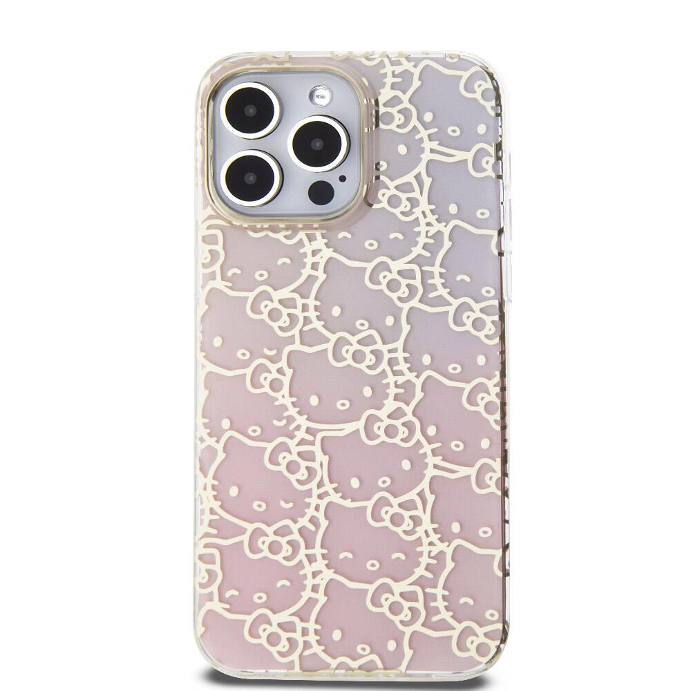 Apple iPhone 15 Pro Max Kılıf Hello Kitty Orjinal Lisanslı Renk Geçişli Elektroplating Kaplama Kitty Head Desenli Kapak
