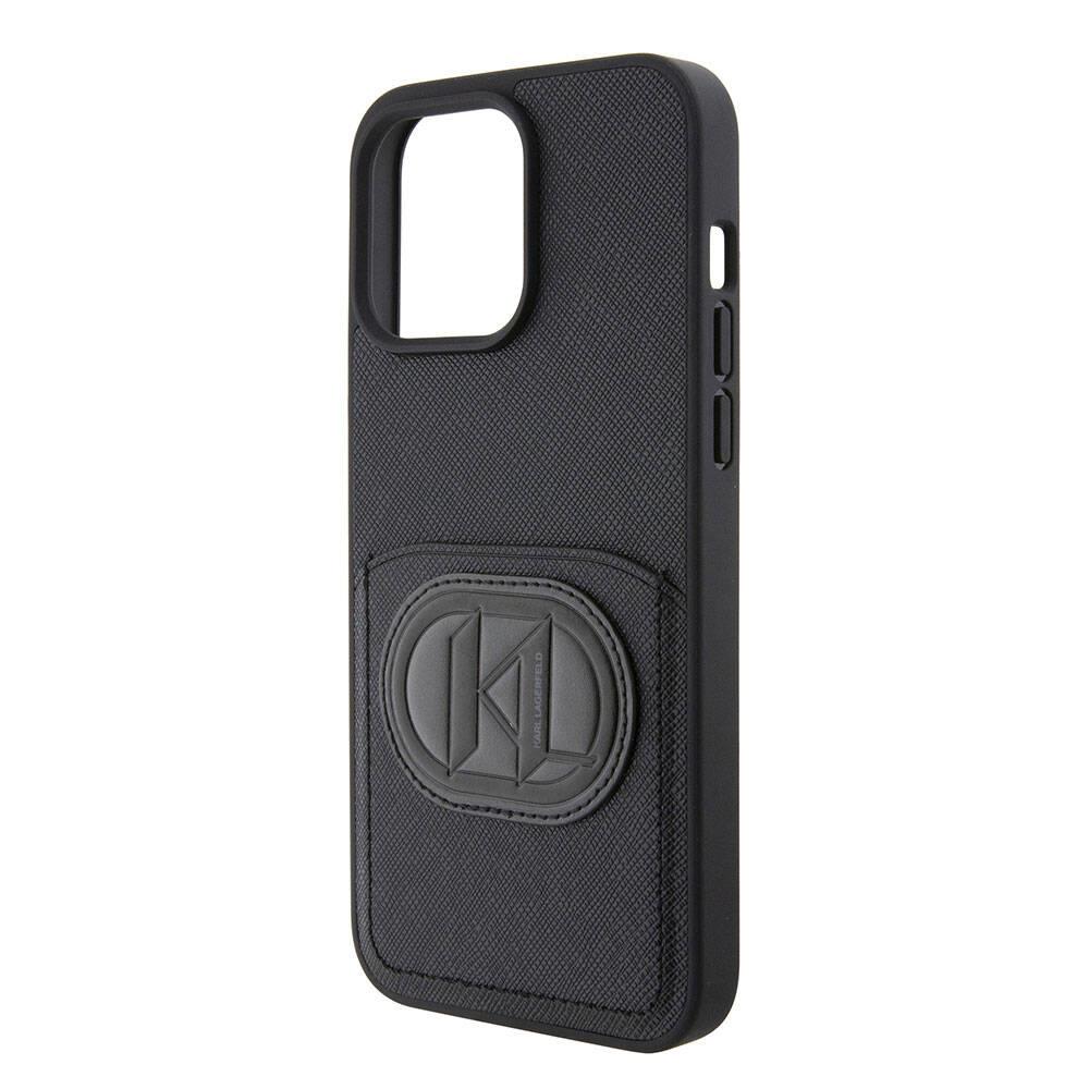 Apple iPhone 15 Pro Max Kılıf Karl Lagerfeld Kartlıklı Saffiano K&L Patch Orjinal Lisanslı Kapak