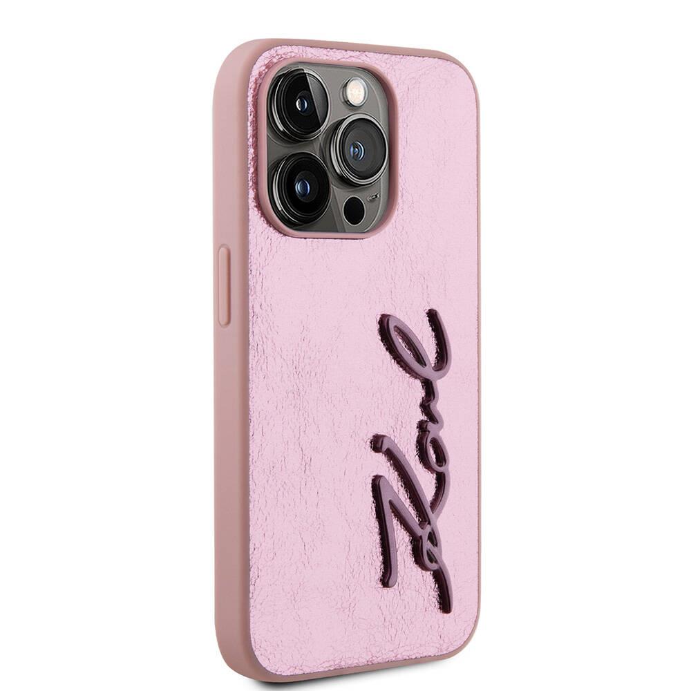 iPhone 15 Pro Max Kılıf Karl Lagerfeld Orjinal Lisanslı 3D KL Yazılı Tüylü Arka Yüzey Saffiano Rhinestones Kapak