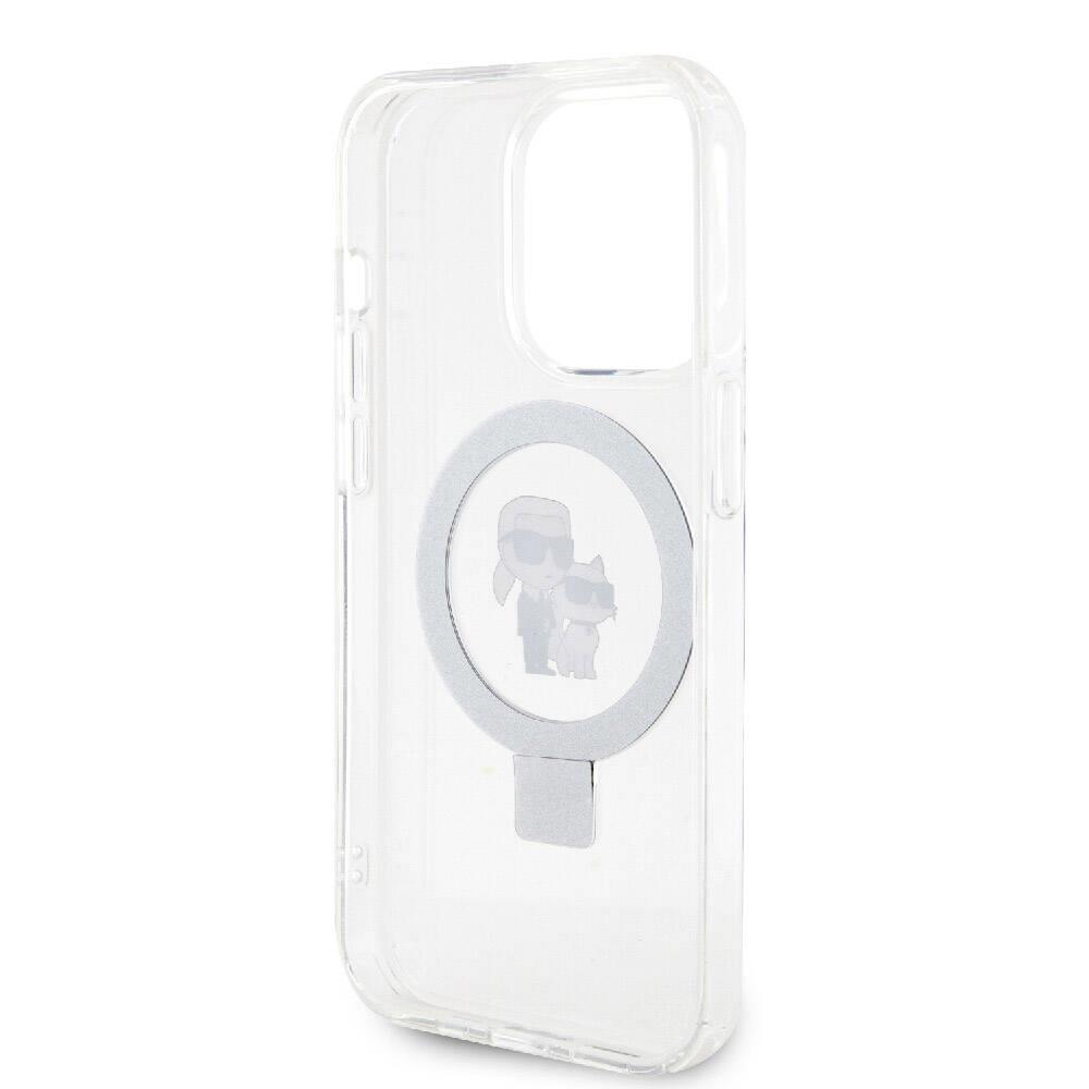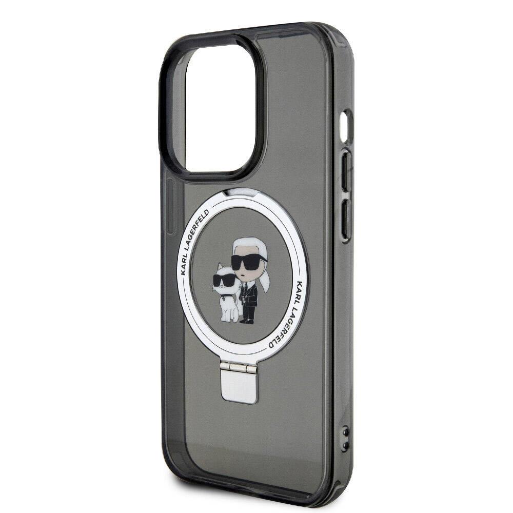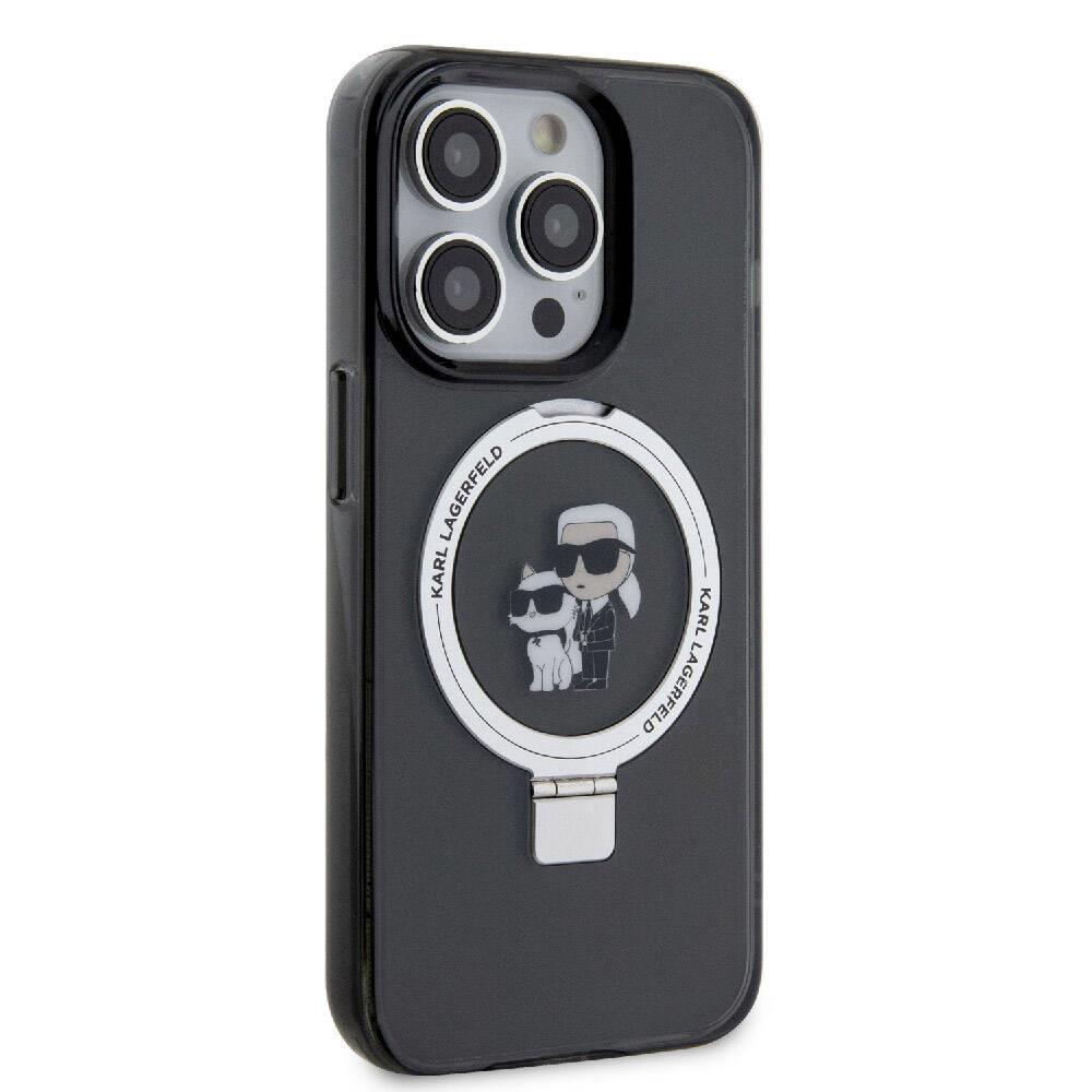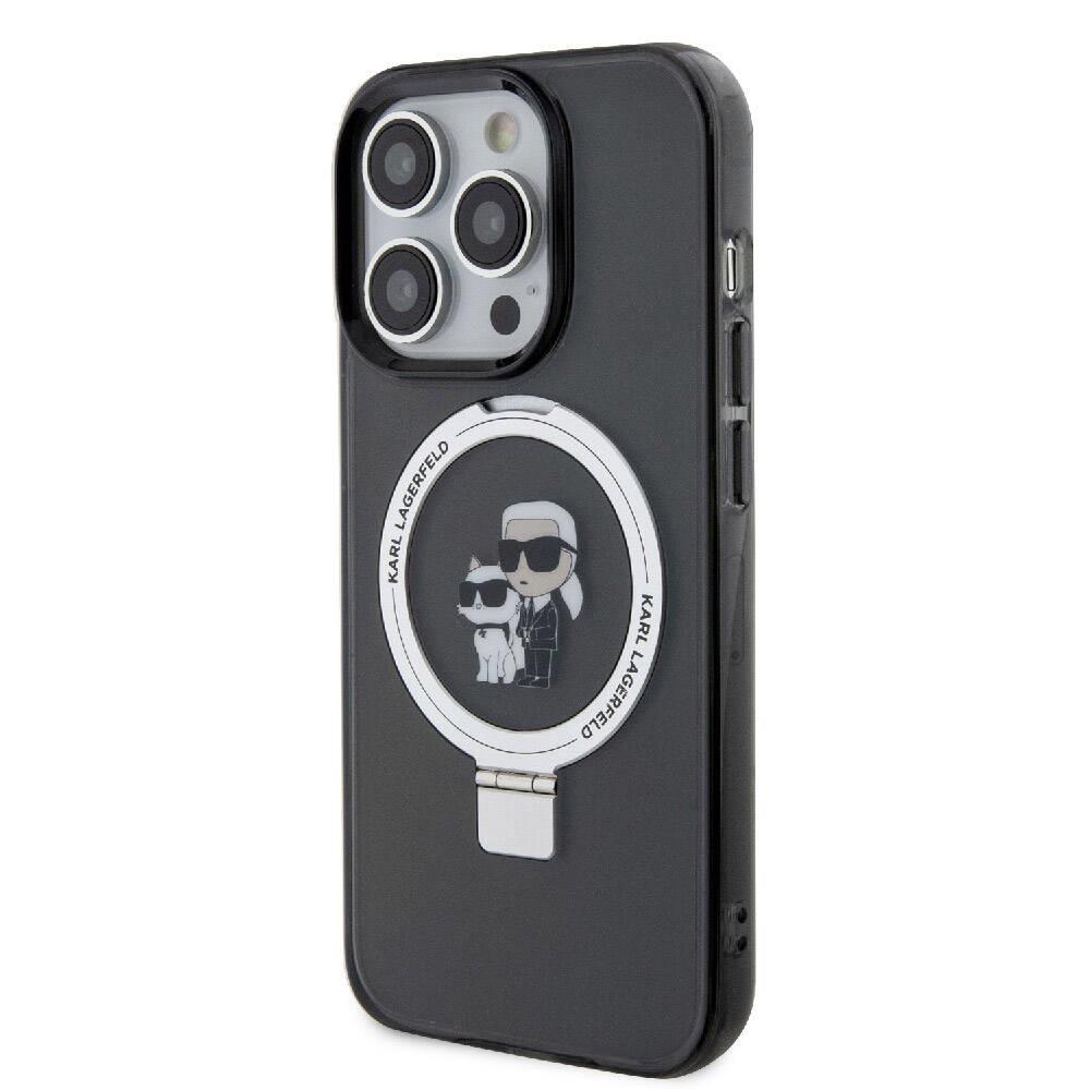 Apple iPhone 15 Pro Max Kılıf Karl Lagerfeld Orjinal Lisanslı M-safe Şarj Özellikli K&C İkonik Baskılı Ring Standlı Kapak
