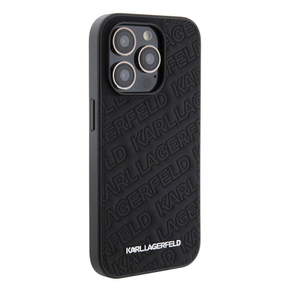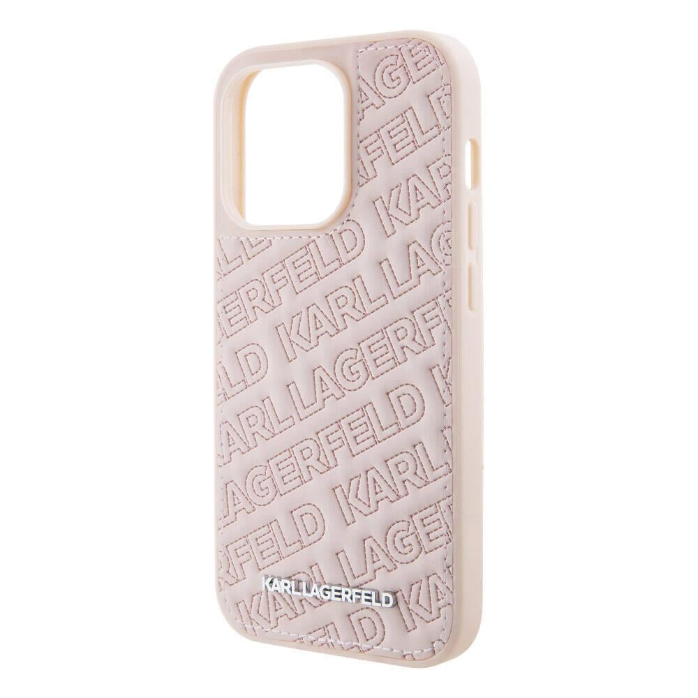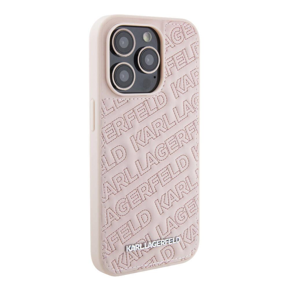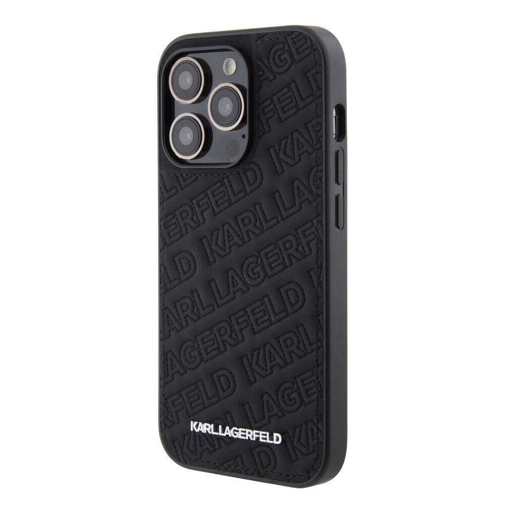 Apple iPhone 15 Pro Max Kılıf Karl Lagerfeld Orjinal Lisanslı Metal Yazı Logolu Dikişli Logo Arka Yüzey Kapitone Kapak