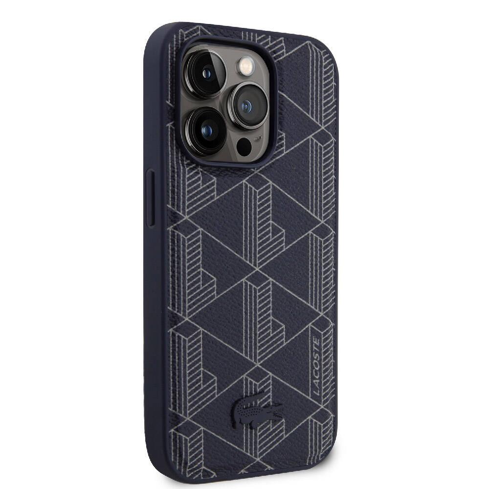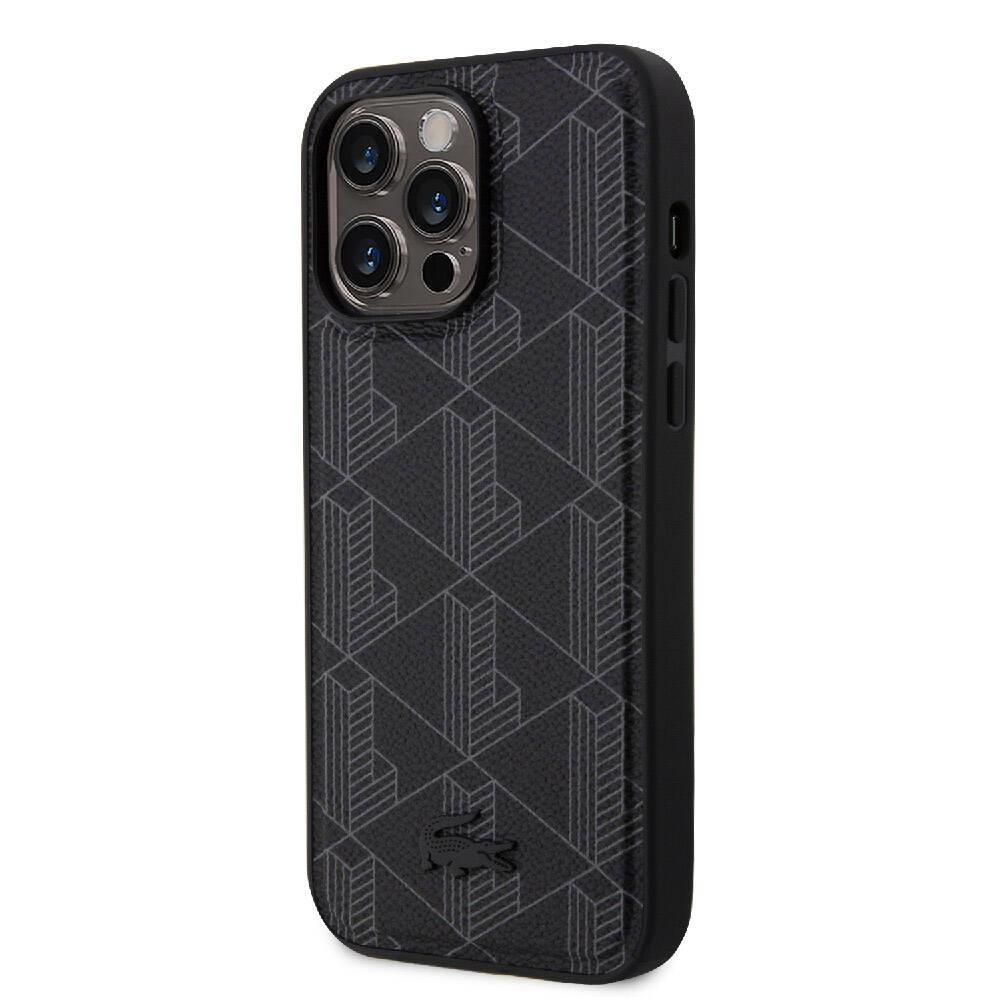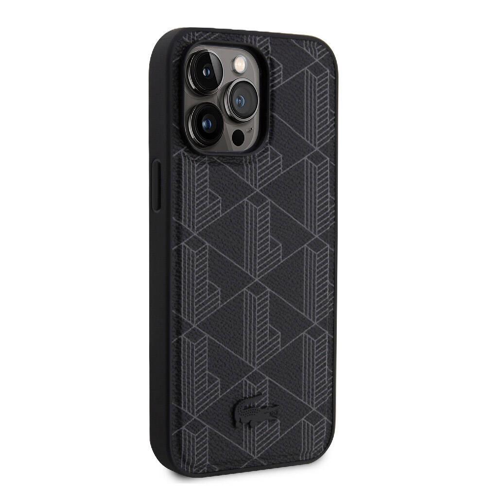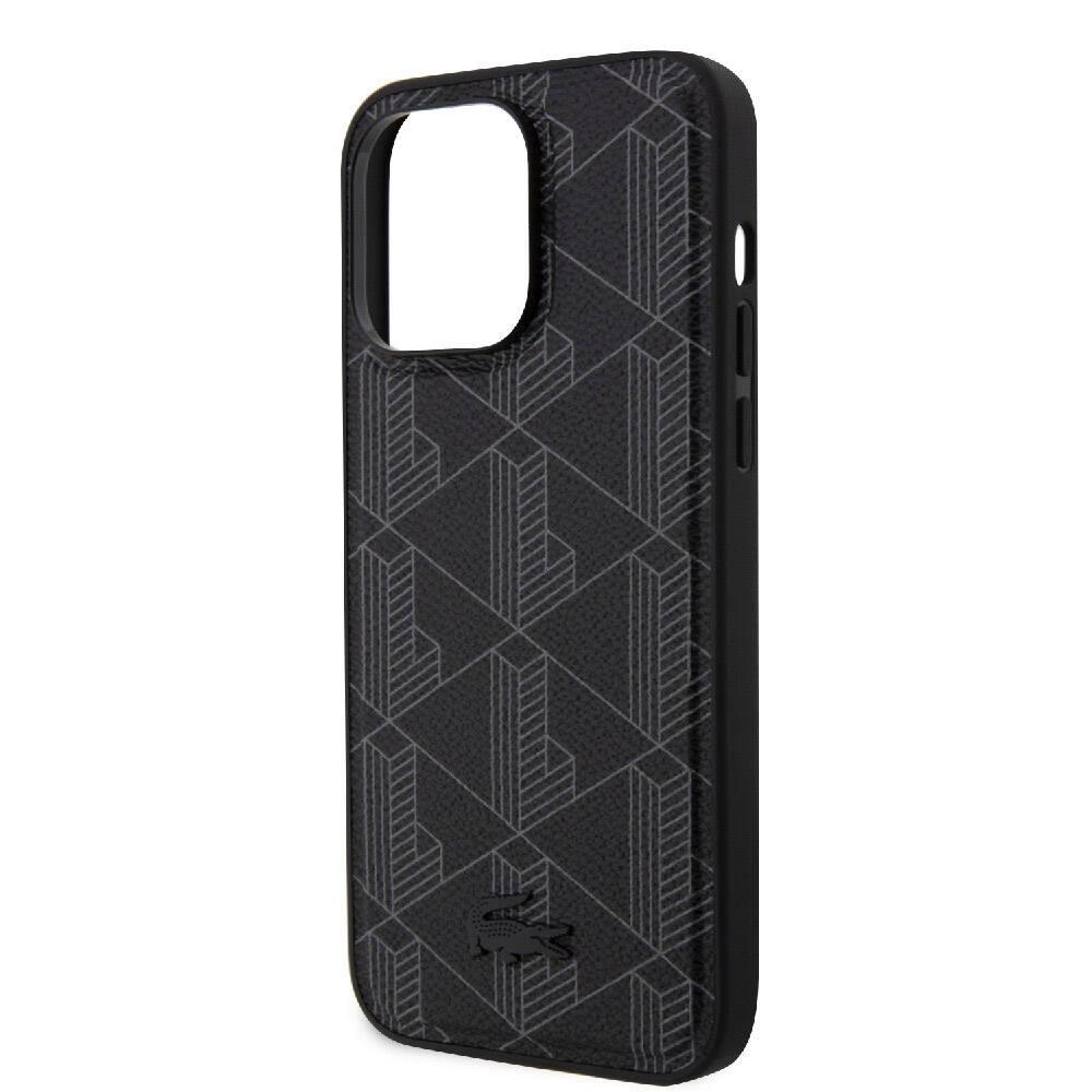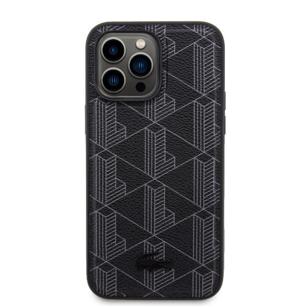 Apple iPhone 15 Pro Max Kılıf Lacoste Orjinal Lisanslı M-safe Şarj Özellikli PU Deri Görünümlü Karışık Monogram Desenli Kapak