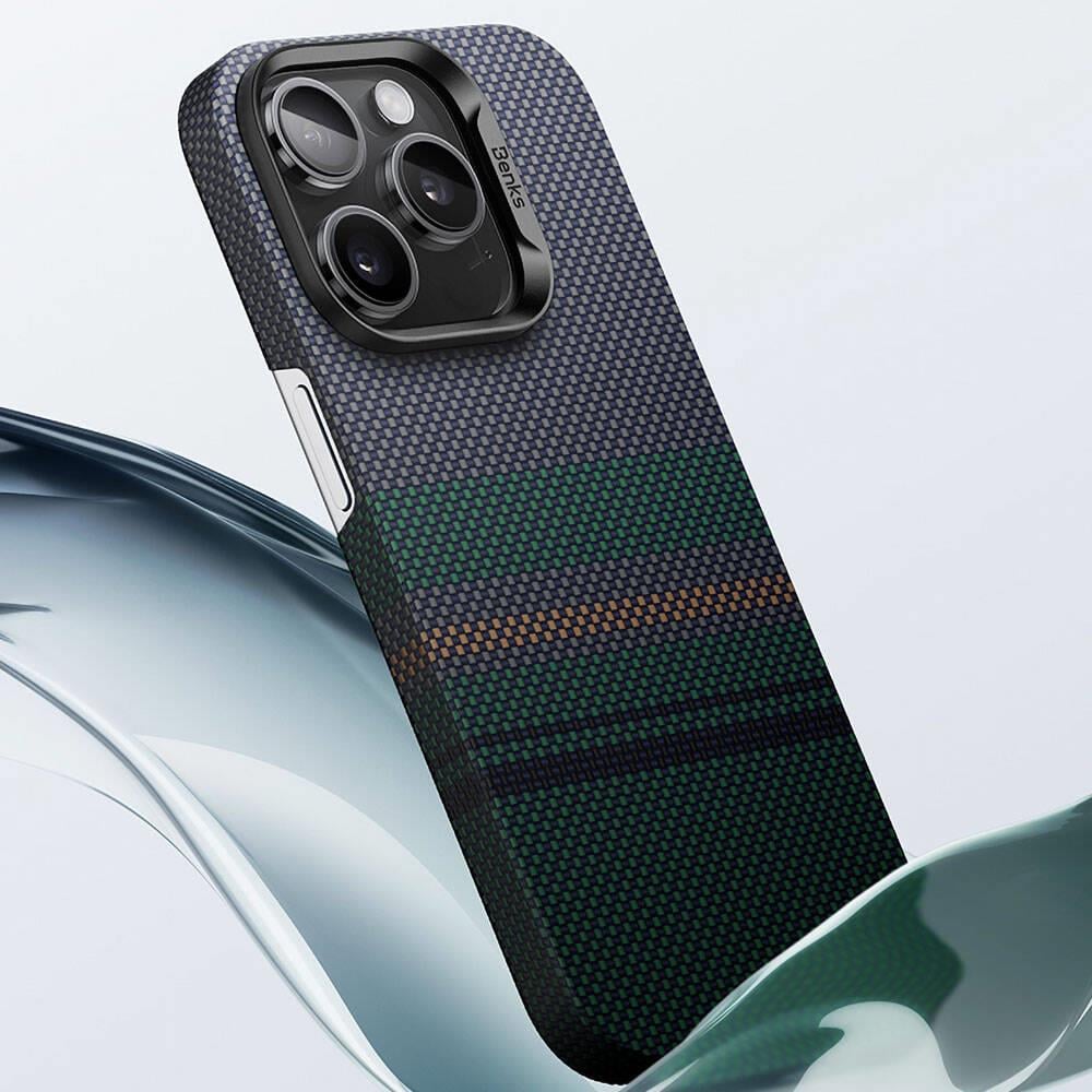iPhone 15 Pro Max Kılıf Magsafe Şarj Özellikli Karbon Fiber Tasarımlı Benks Aurora ArmorAir Kevlar Kapak