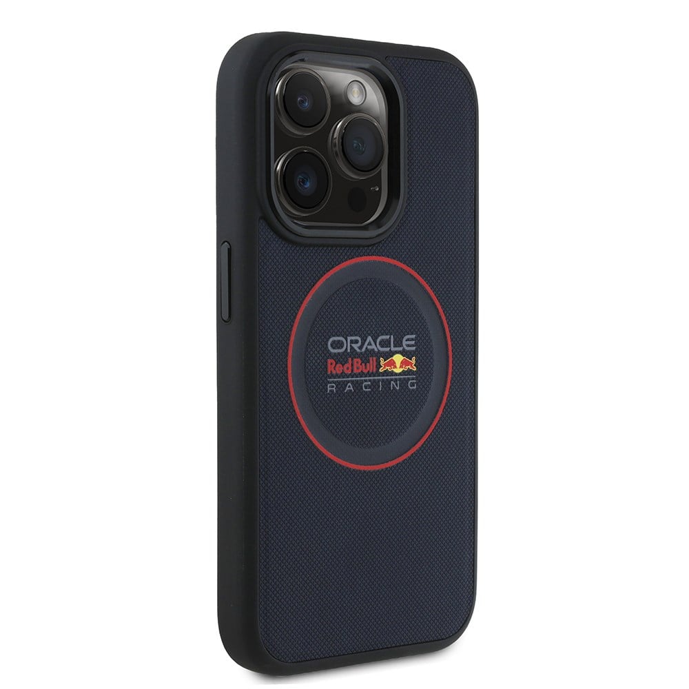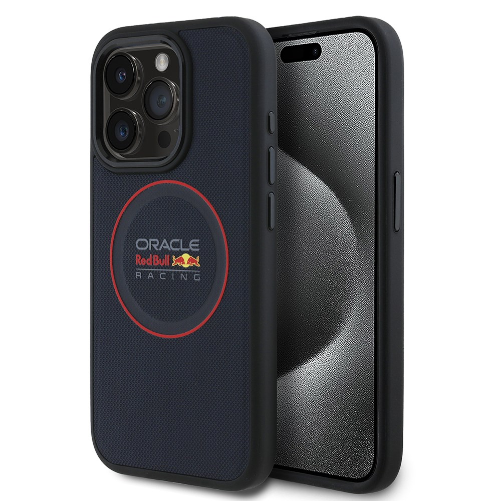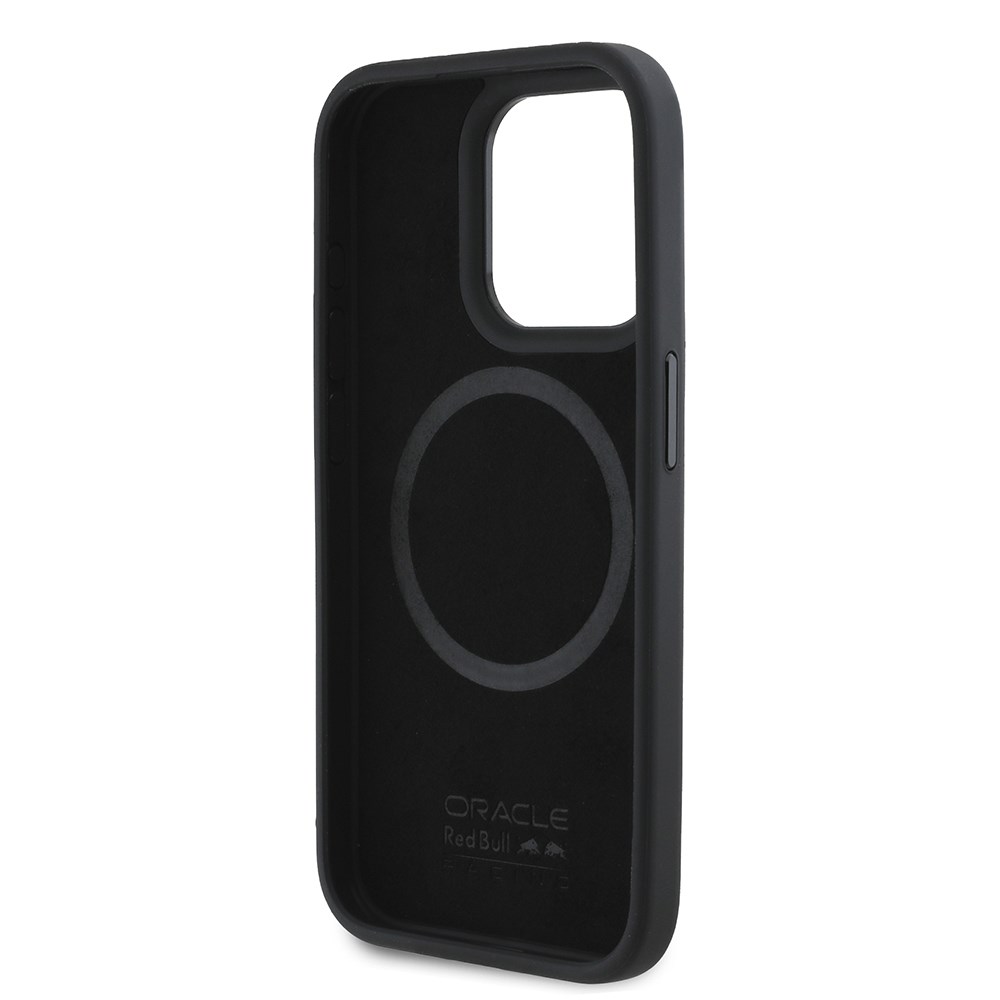 iPhone 15 Pro Max Kılıf Redbull Orjinal Lisanslı Magsafe Şarj Özellikli Kırmızı Halka ve Logo Kabartmalı PU Deri Kapak