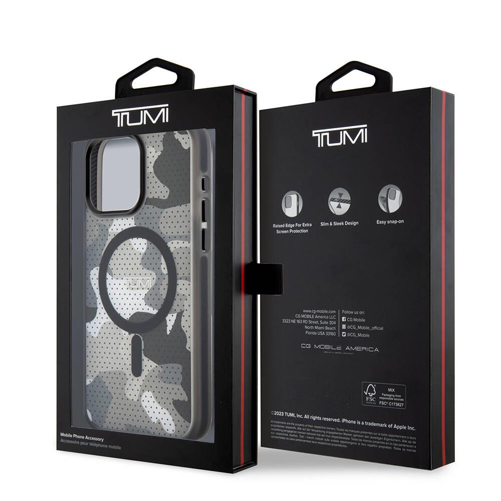 Apple iPhone 15 Pro Max Kılıf TUMI Orjinal Lisanslı Magsafe Şarj Özellikli Buzlanmış Saydam Ağ Kamuflajı Desenli Kapak