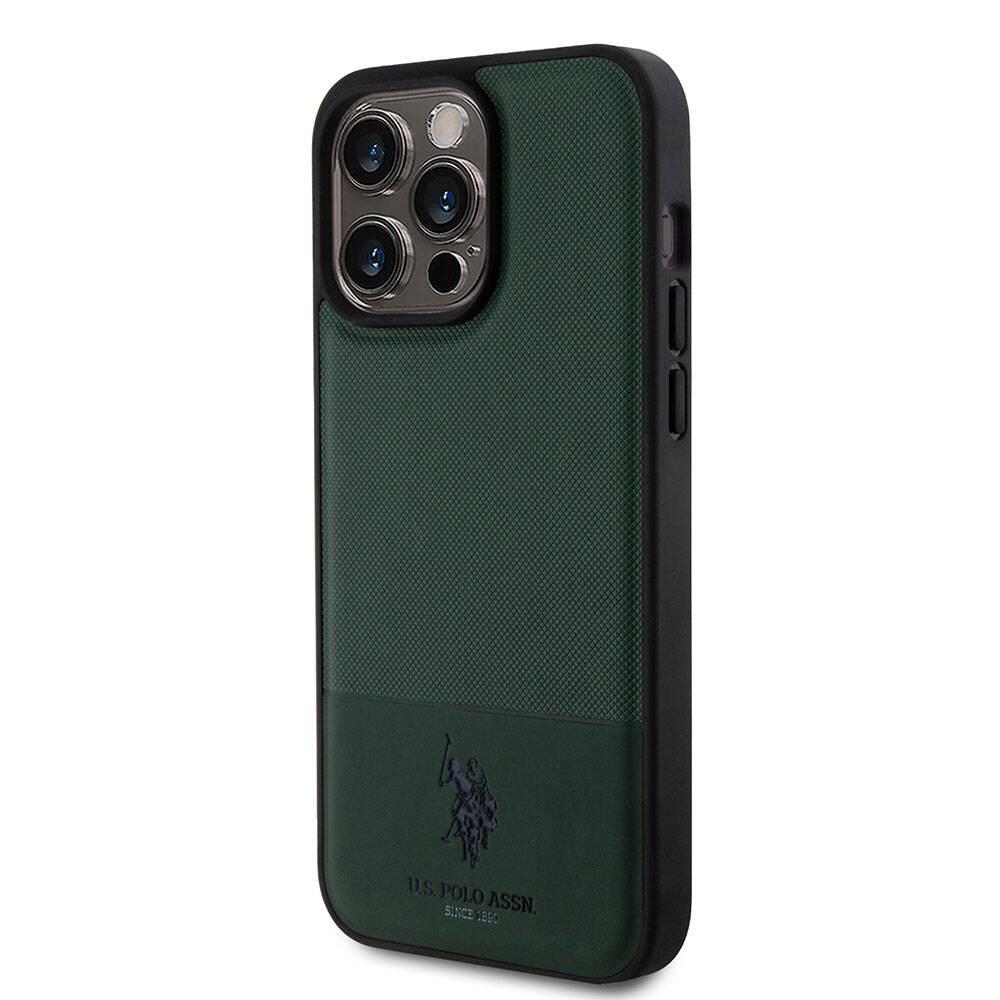 Apple iPhone 15 Pro Max Kılıf U.S. Polo Assn. Orjinal Lisanslı Suni Deri Arka Yüzey Baskı Logolu Örgü Desenli Kapak