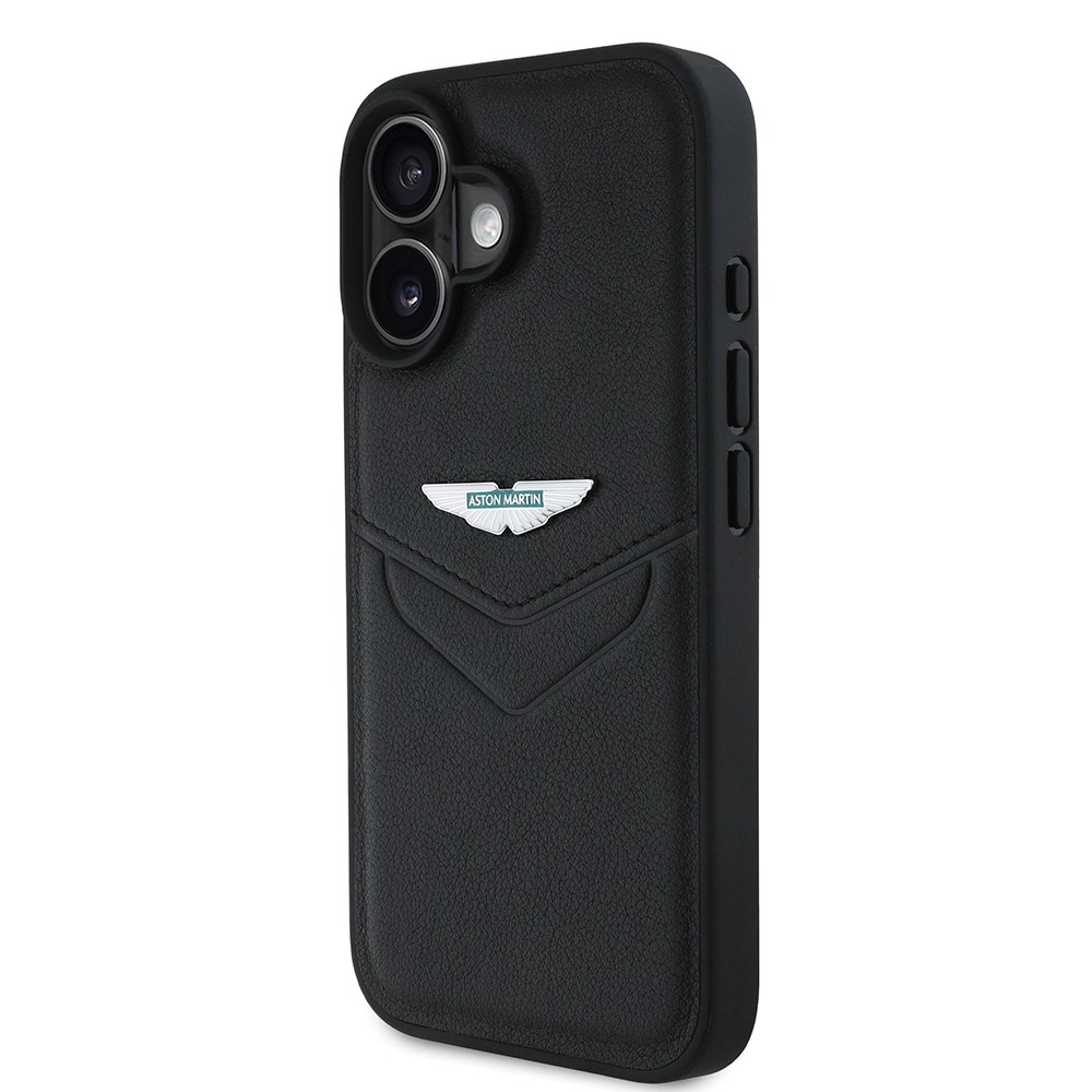 Apple iPhone 16 Kılıf Aston Martin Orjinal Lisanslı Victory Dizayn PU Deri Metal Logolu Kapak