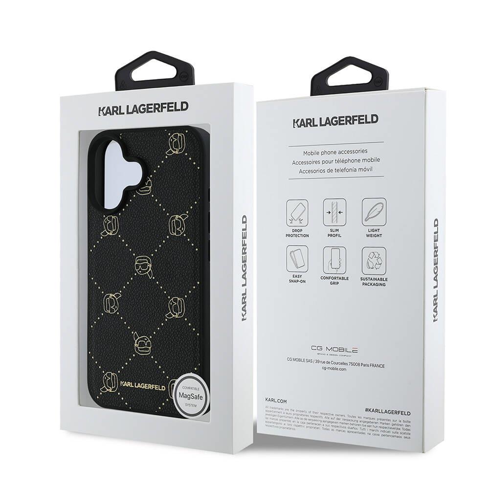 Apple iPhone 16 Kılıf Karl Lagerfeld Orjinal Lisanslı M-safe Şarj Özellikli PU Deri Karl Heads Desenli Klasik Logolu Kapak