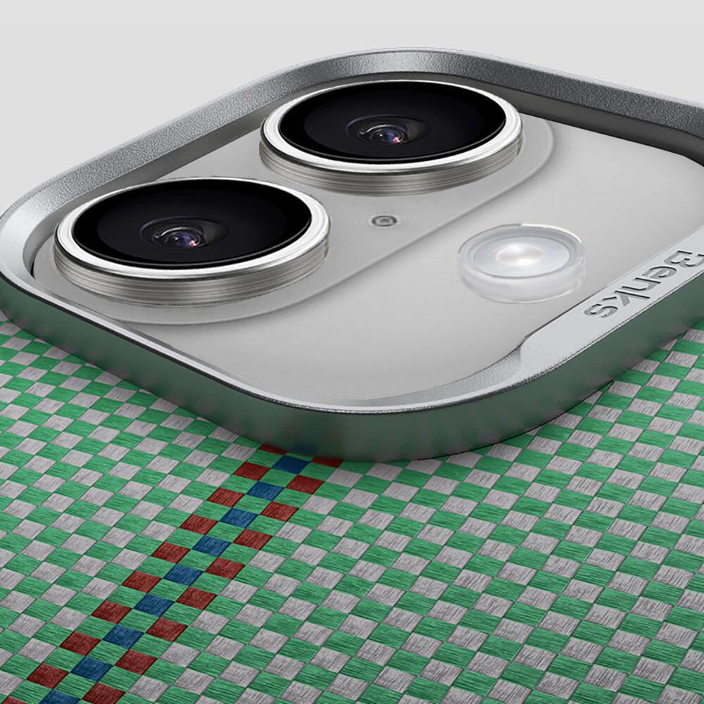 iPhone 16 Kılıf Magsafe Şarj Özellikli Karbon Fiber Tasarımlı Benks Passion Green ArmorAir Kevlar Kapak