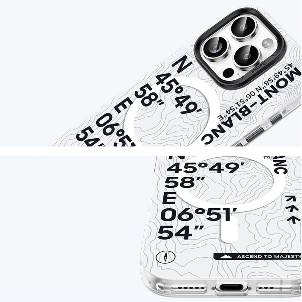 iPhone 16 Kılıf Magsafe Şarj Özellikli Koordinat Yazı Desenli Benks Summit Serisi Kapak