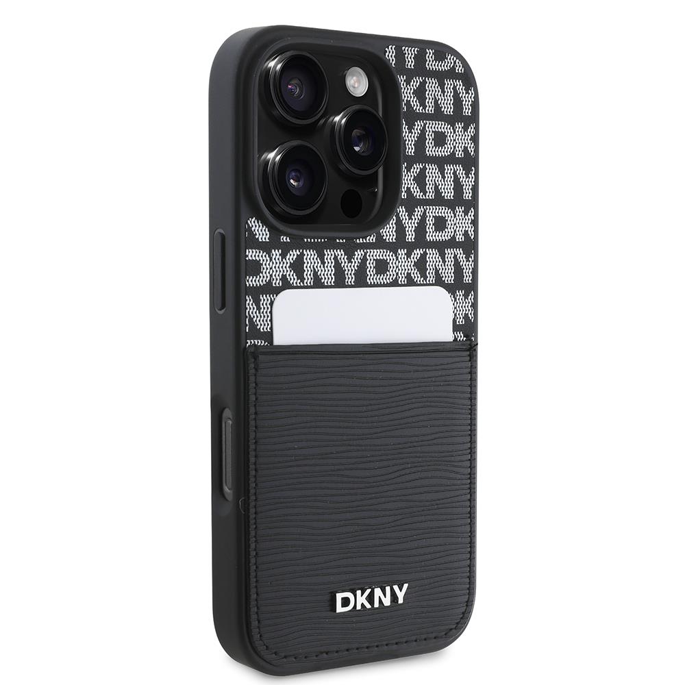 Apple iPhone 16 Pro Kılıf DKNY Orjinal Lisanslı Kartlıklı 3D Yazılı Repeat Texture Pattern Kapak