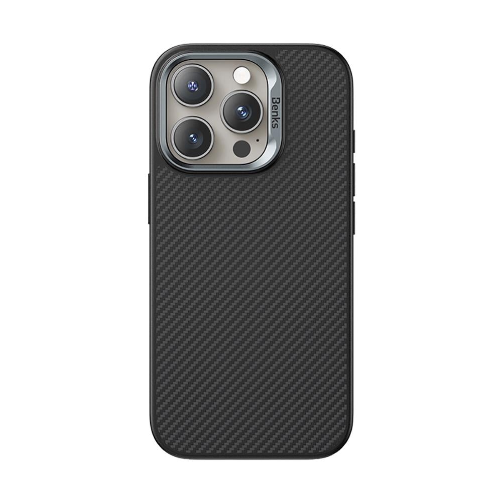 iPhone 16 Pro Kılıf Karbon Fiber M-safe Şarj Özellikli Kamerra Kontrol Butonlu Benks Hybrid ArmorPro 600D Kevlar Kapak