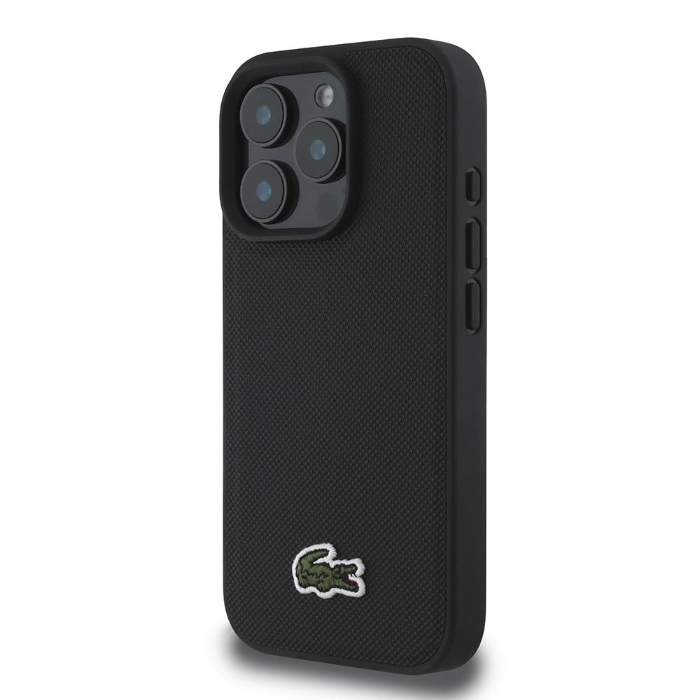 Apple iPhone 16 Pro Kılıf Lacoste Orjinal Lisanslı PU Pike Desenli Arka Yüzey İkonik Timsah Dokuma Logolu Kapak + Type-C Kablo 1.5m