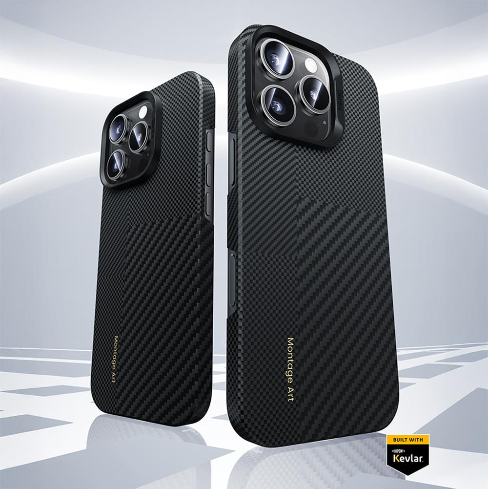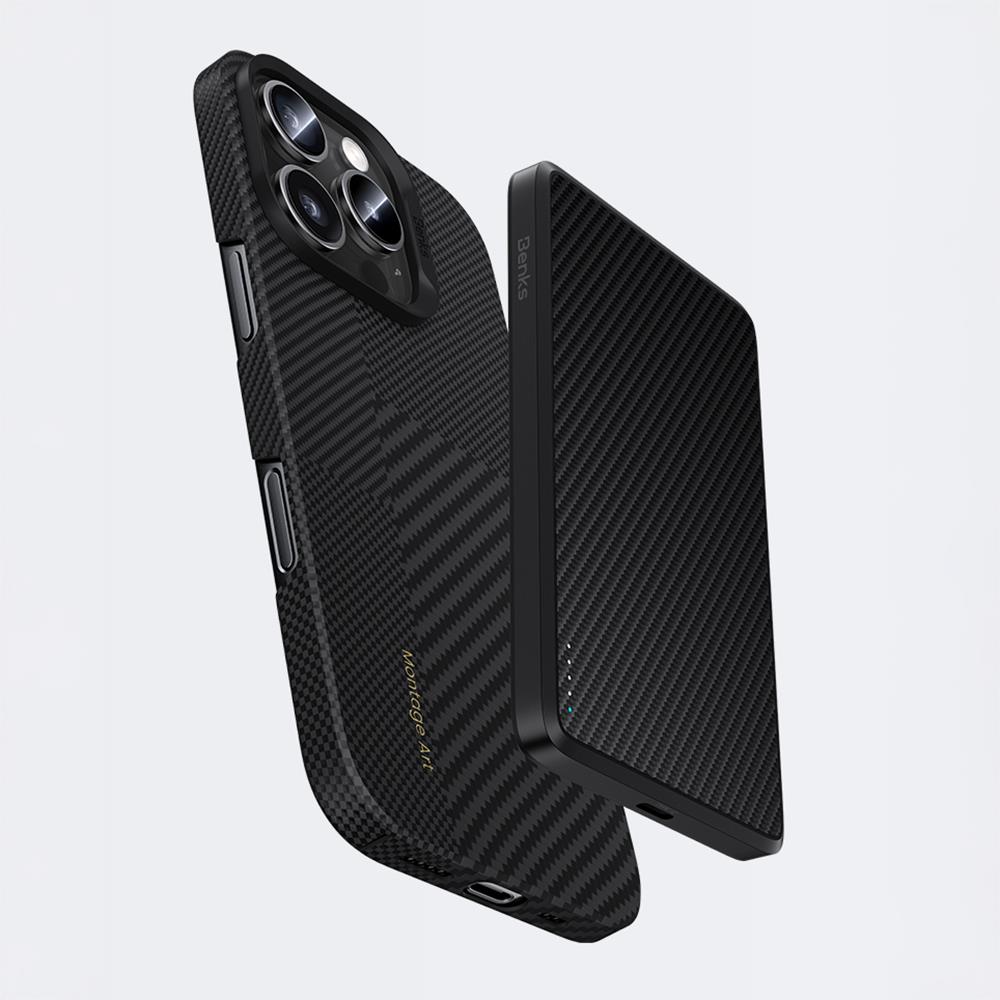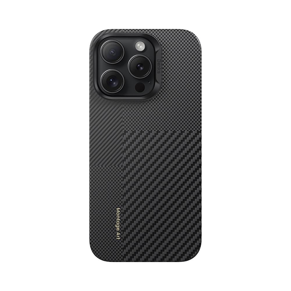 iPhone 16 Pro Kılıf M-safe Şarj Özellikli Karbon Fiber Metal Kamera Çerçeveli Benks Montage ArmorAir Kevlar Kapak