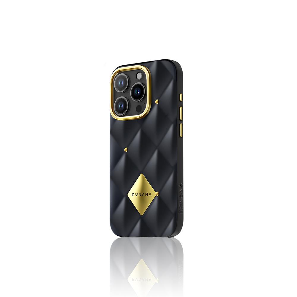 Apple iPhone 16 Pro Kılıf Parlak Arka Yüzeyli Kabartma Tasarımlı Kapitone Pynana Metal Diamond Serisi Kapak