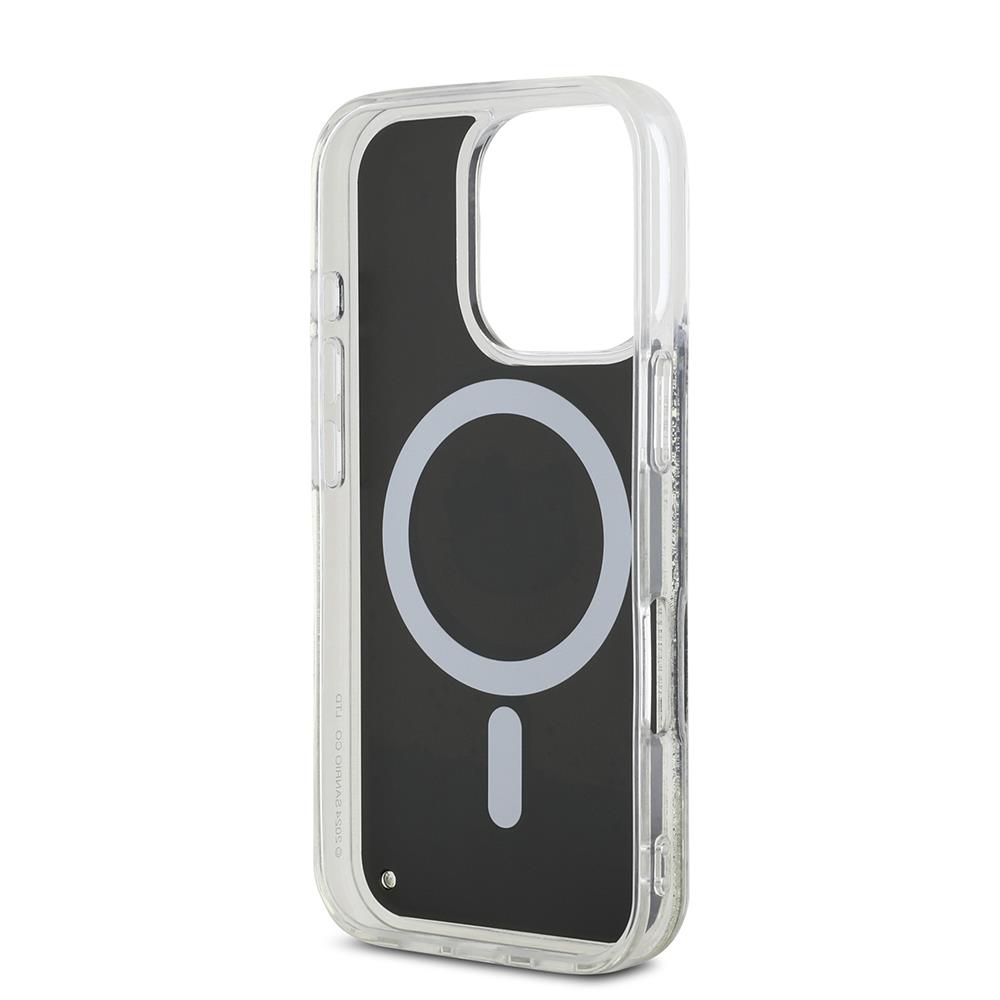 Apple iPhone 16 Pro Max Kılıf Hello Kitty Orjinal Lisanslı M-safe Şarj Özellikli IML Baskı Kitty Head Logolu Sıvılı Simli Altın Ateşi Kapak