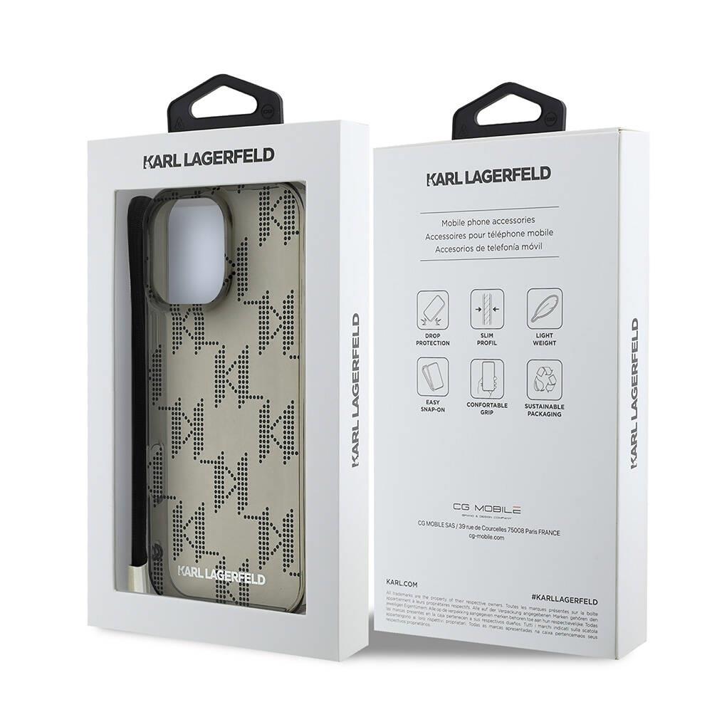 Apple iPhone 16 Pro Max Kılıf Karl Lagerfeld Orjinal Lisanslı KL Desenli Saydam Bilek Askı İpli Klasik Logolu Kapak