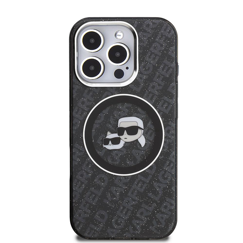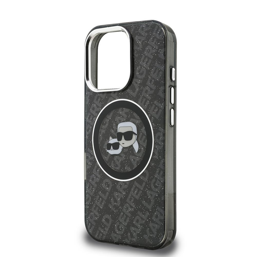 Apple iPhone 16 Pro Max Kılıf Karl Lagerfeld Orjinal Lisanslı Parlayan Simli Karl & Choupette Heads Kapak