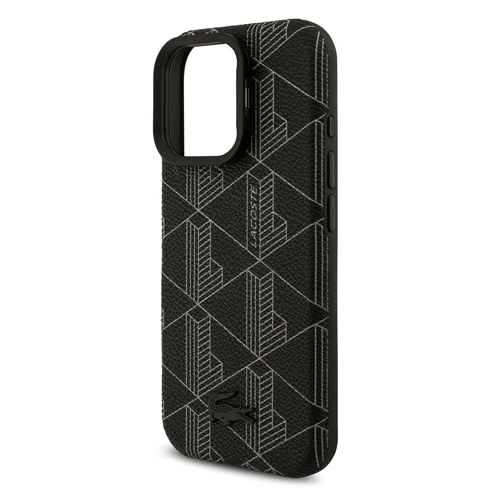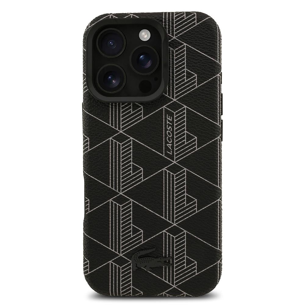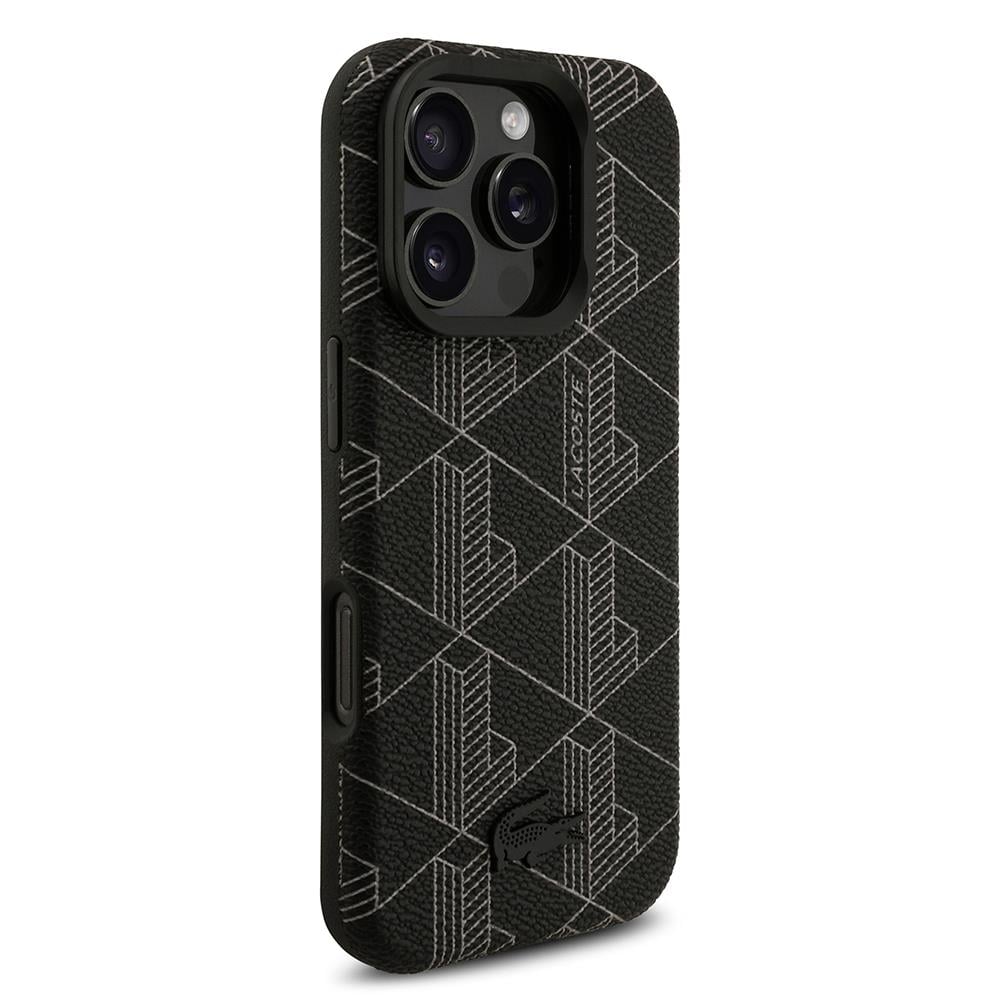 iPhone 16 Pro Max Kılıf Lacoste Orjinal Lisanslı M-safe Şarj Özellikli Standlı PU Deri Karışık Monogram Desenli Kapak