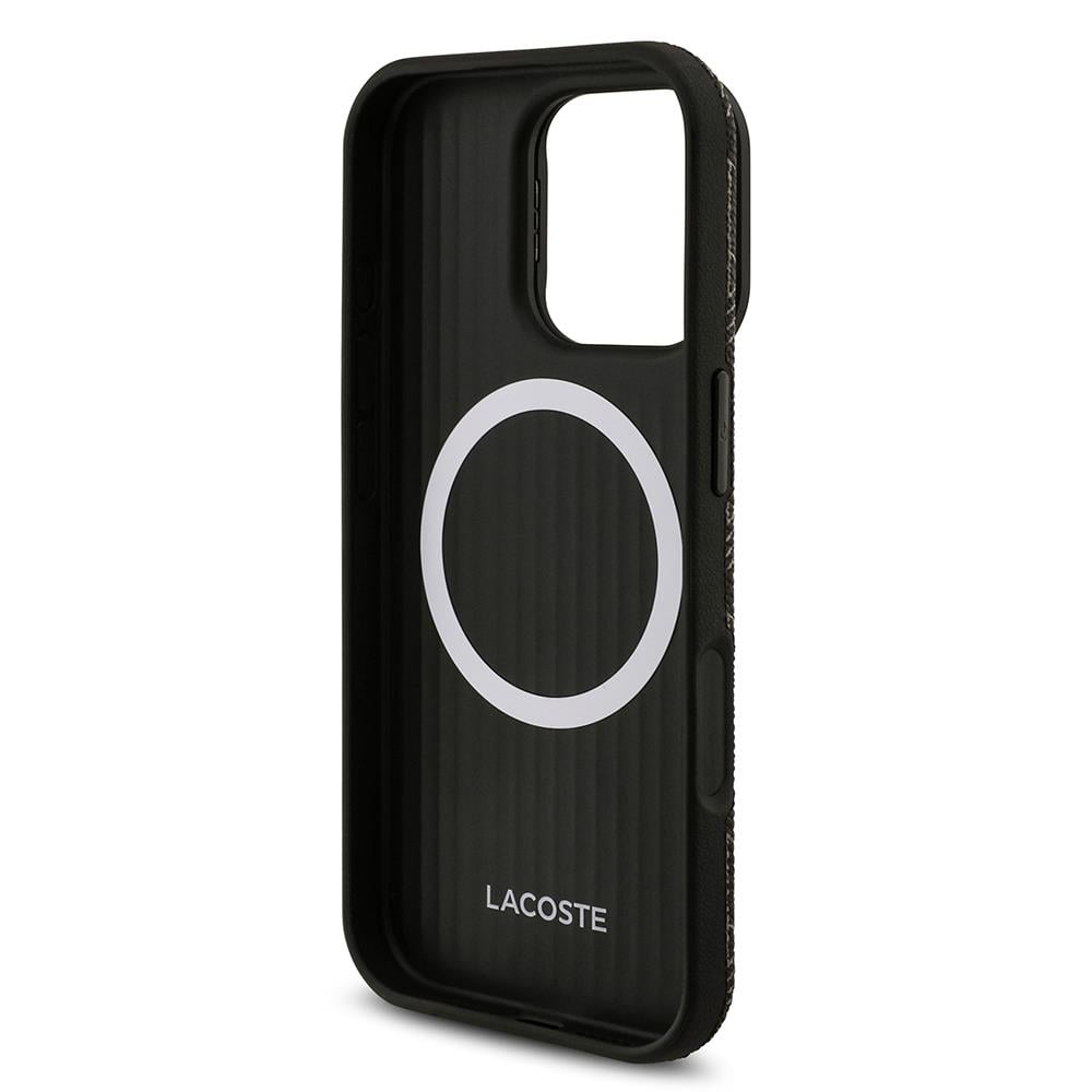 Apple iPhone 16 Pro Max Kılıf Lacoste Orjinal Lisanslı M-safe Şarj Özellikli Standlı PU Deri Karışık Monogram Desenli Kapak