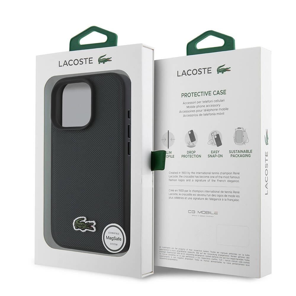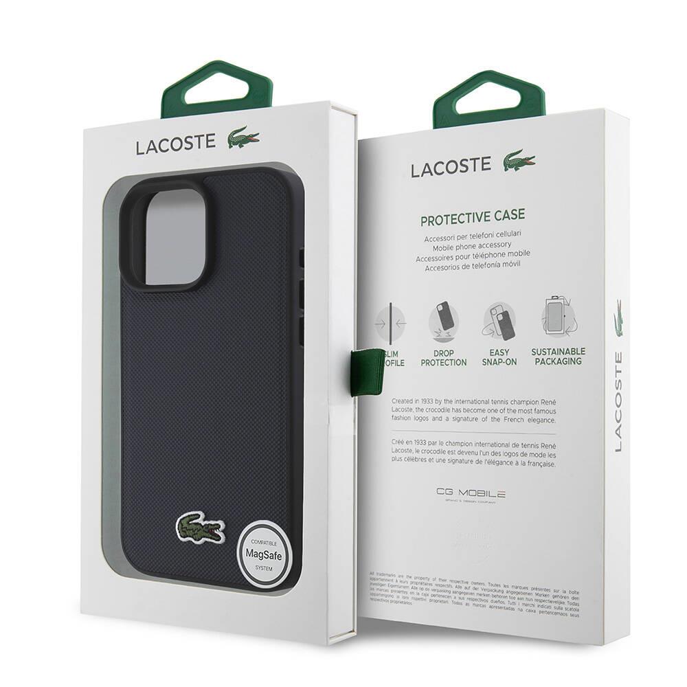 Apple iPhone 16 Pro Max Kılıf Lacoste Orjinal Lisanslı PU Pike Desenli Arka Yüzey İkonik Timsah Dokuma Logolu Kapak