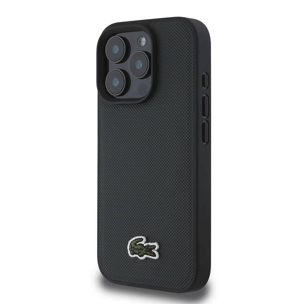 iPhone 16 Pro Max Kılıf Lacoste Orjinal Lisanslı PU Pike Desenli Arka Yüzey İkonik Timsah Dokuma Logolu Kapak