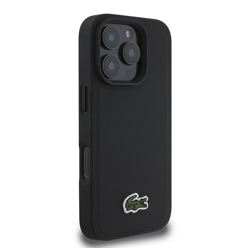 Apple iPhone 16 Pro Max Kılıf Lacoste Orjinal Lisanslı PU Pike Desenli Arka Yüzey İkonik Timsah Dokuma Logolu Kapak + Type-C Kablo 1.5m
