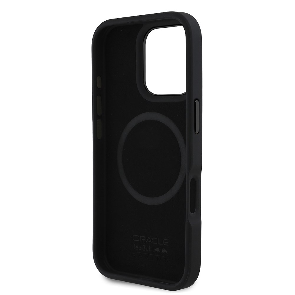 Apple iPhone 16 Pro Max Kılıf Redbull Orjinal Lisanslı M-safe Şarj Özellikli Kırmızı Halka ve Logo Kabartmalı PU Deri Kapak