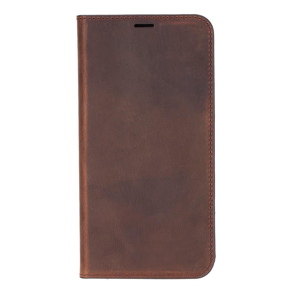 Apple iPhone 16 Pro Max uyumlu, Hakiki Deri, El Yapımı, Cüzdanlı Kılıf, Antik Kahve