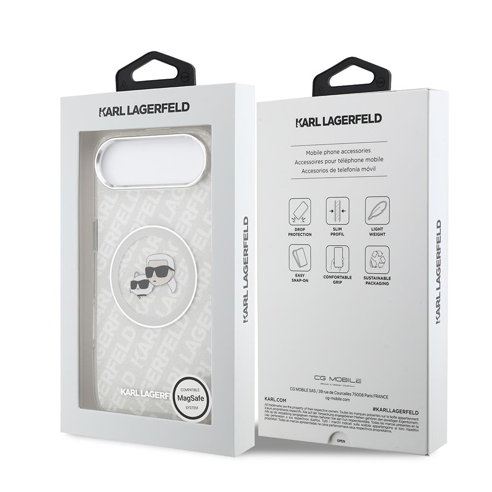 Apple iPhone 17 Air Kılıf Karl Lagerfeld Orjinal Lisanslı Parlayan Simli Karl & Choupette Heads Kapak