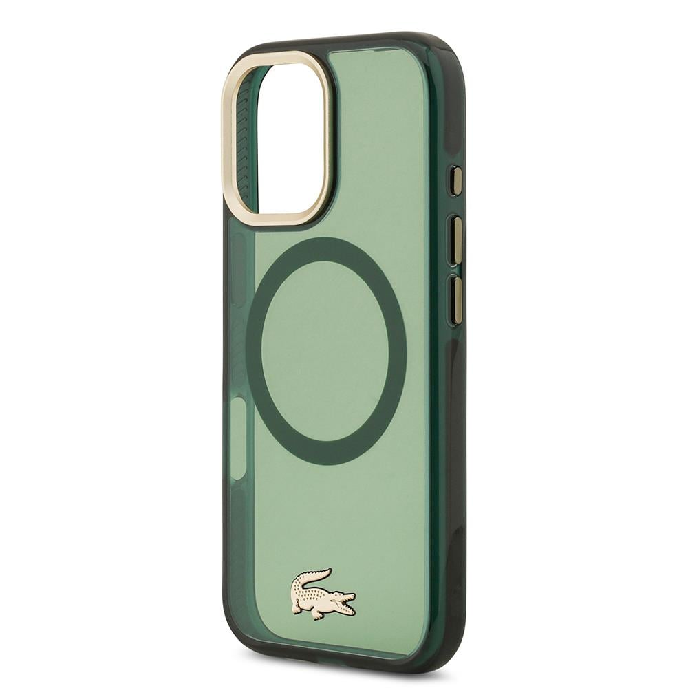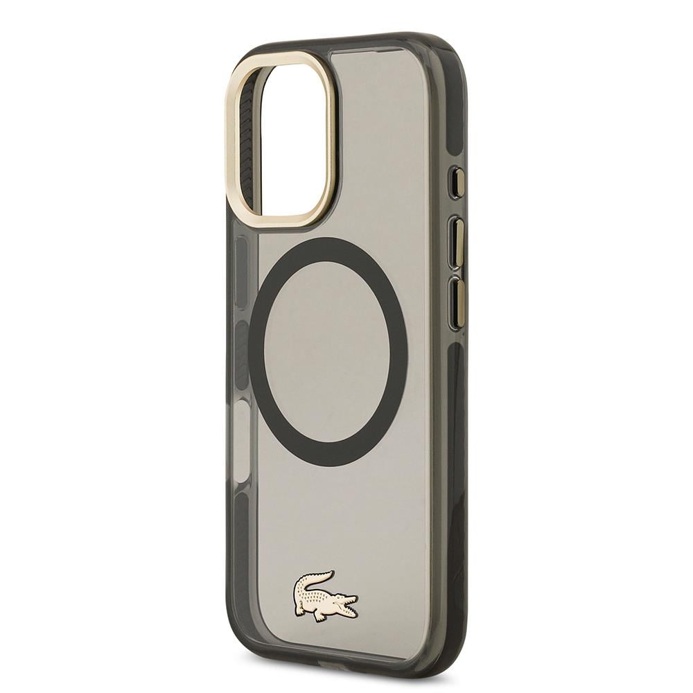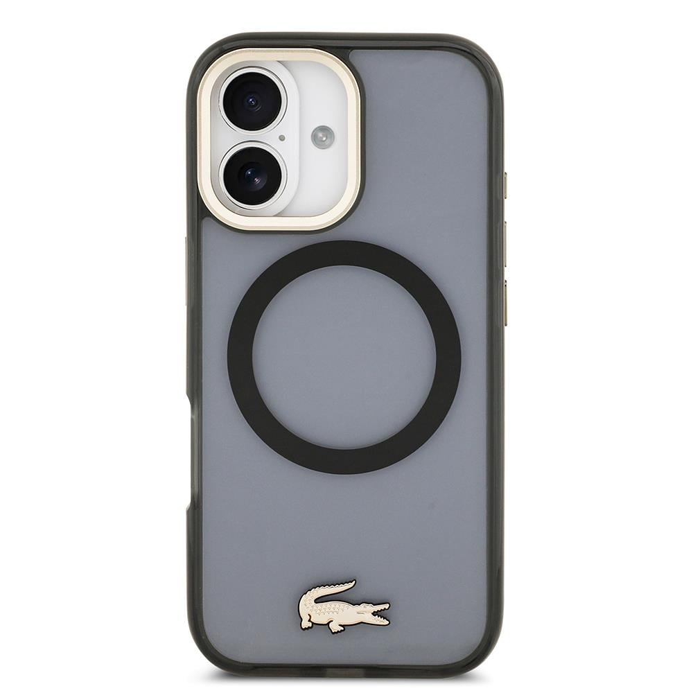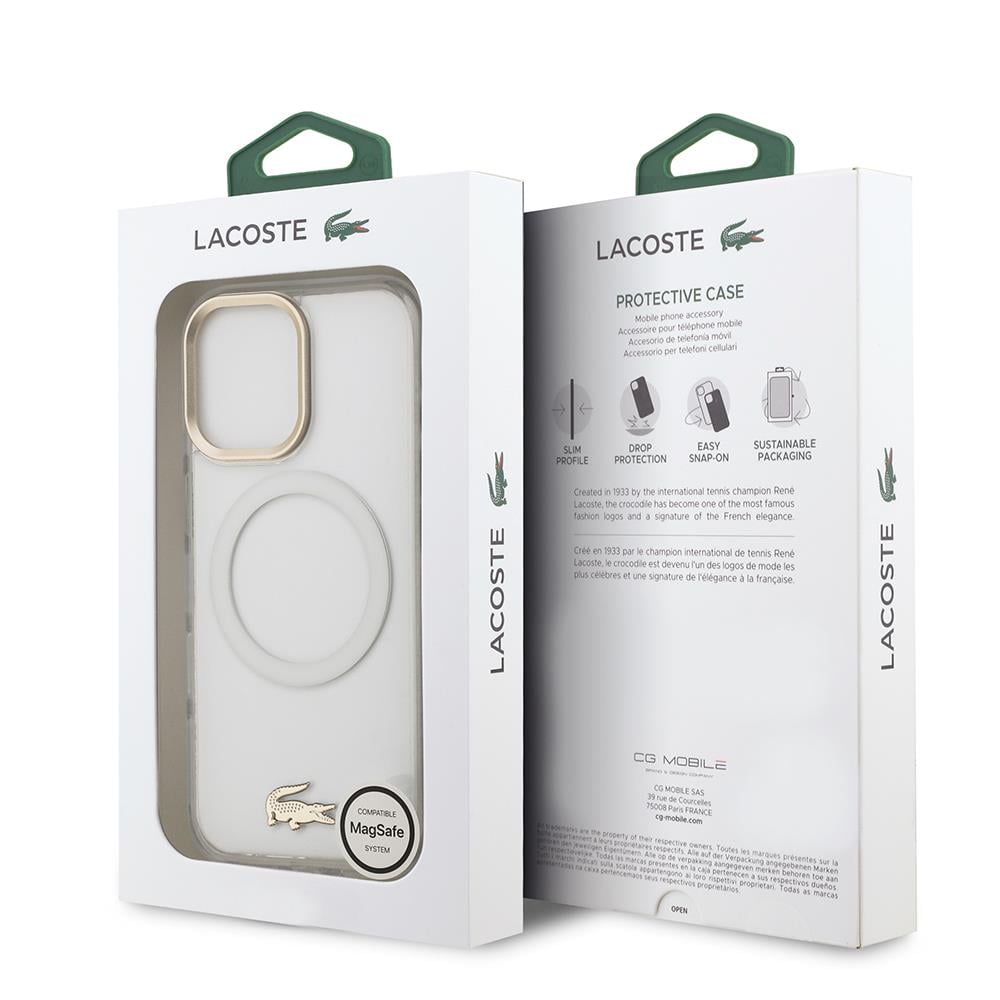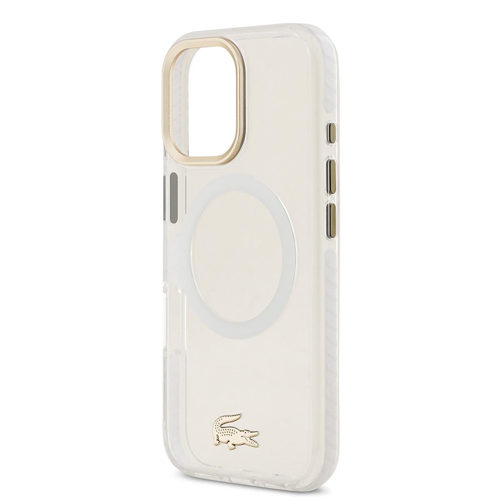 iPhone 17 Kılıf Lacoste Orjinal Lisanslı M-safe Şarj Özellikli Gold Timsah Logolu Buzlu Kapak
