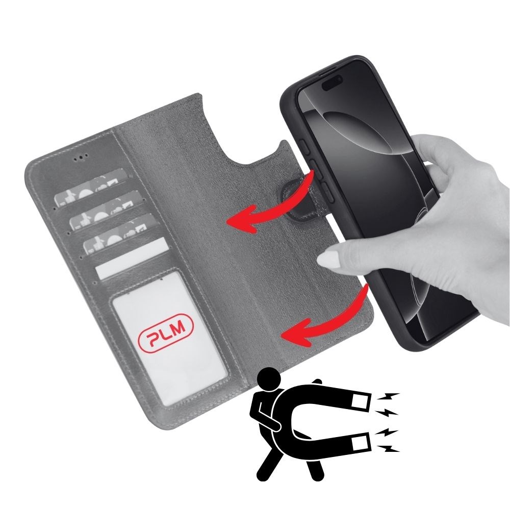Apple iPhone 17 Pro için, Hakiki Deri, El Yapımı Cüzdanlı Kılıf, Magsafe ile uyumlu, İç Yüzeyi Kadife, Pembe