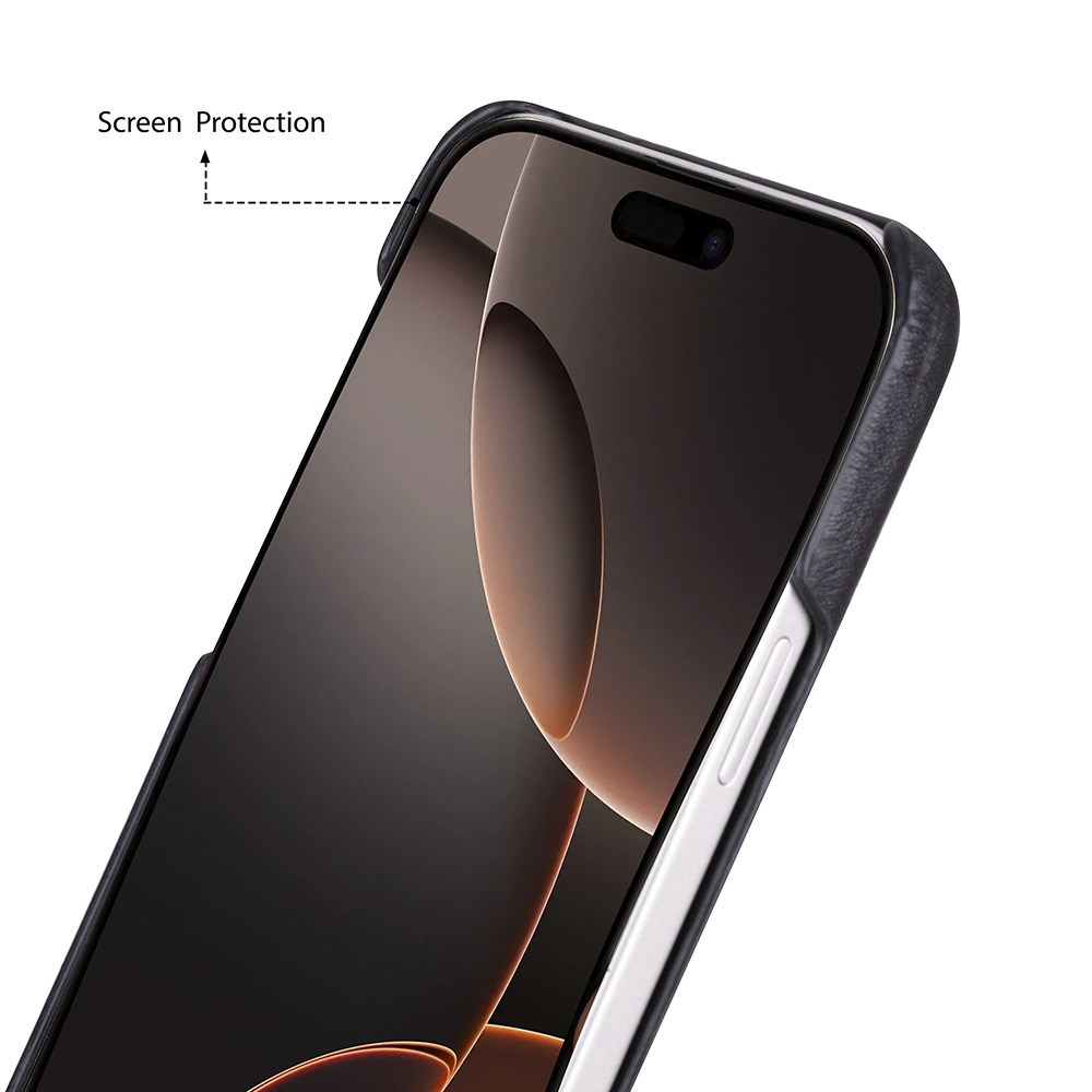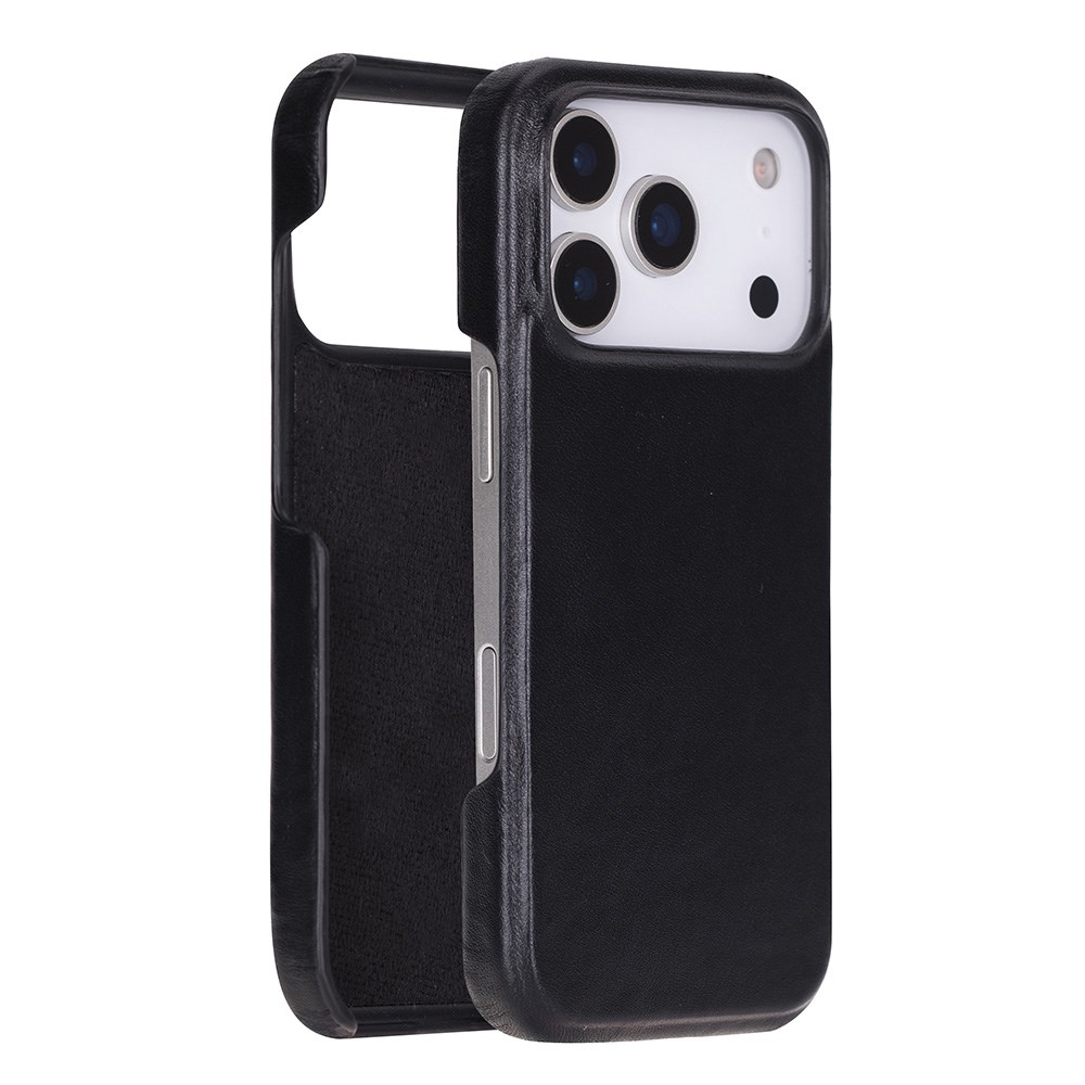 Apple iPhone 17 Pro için, Hakiki Deri, El Yapımı Kılıf, Magsafe ile uyumlu, İç Yüzeyi Kadife, Kömür Siyah