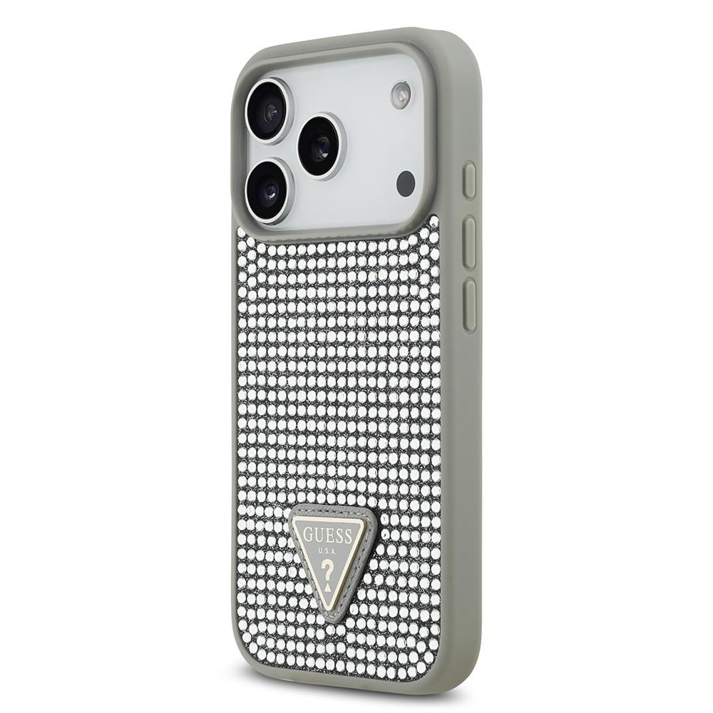 iPhone 17 Pro Kılıf Guess Orjinal Lisanslı Taşlı Arka Yüzey Üçgen Logolu Kapak