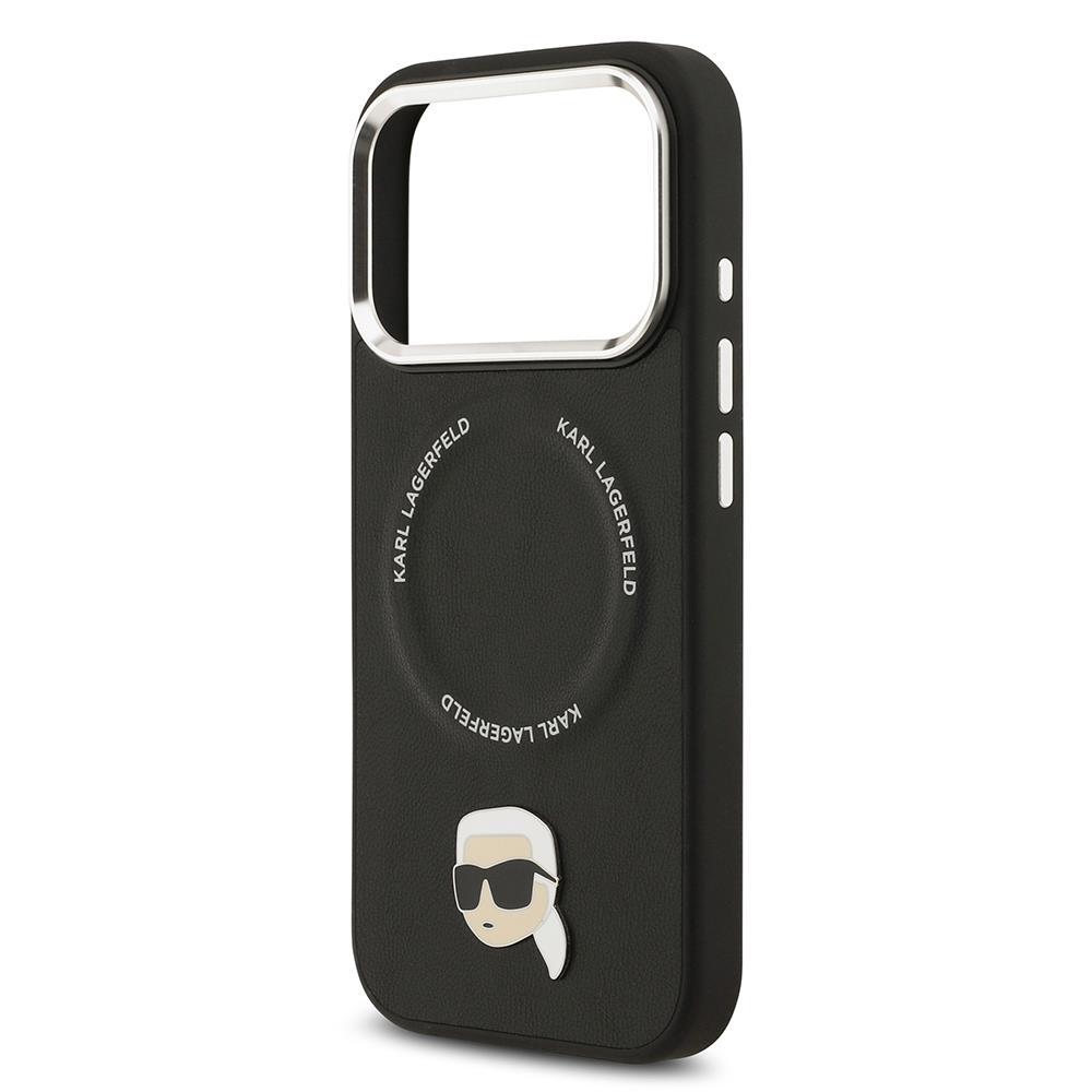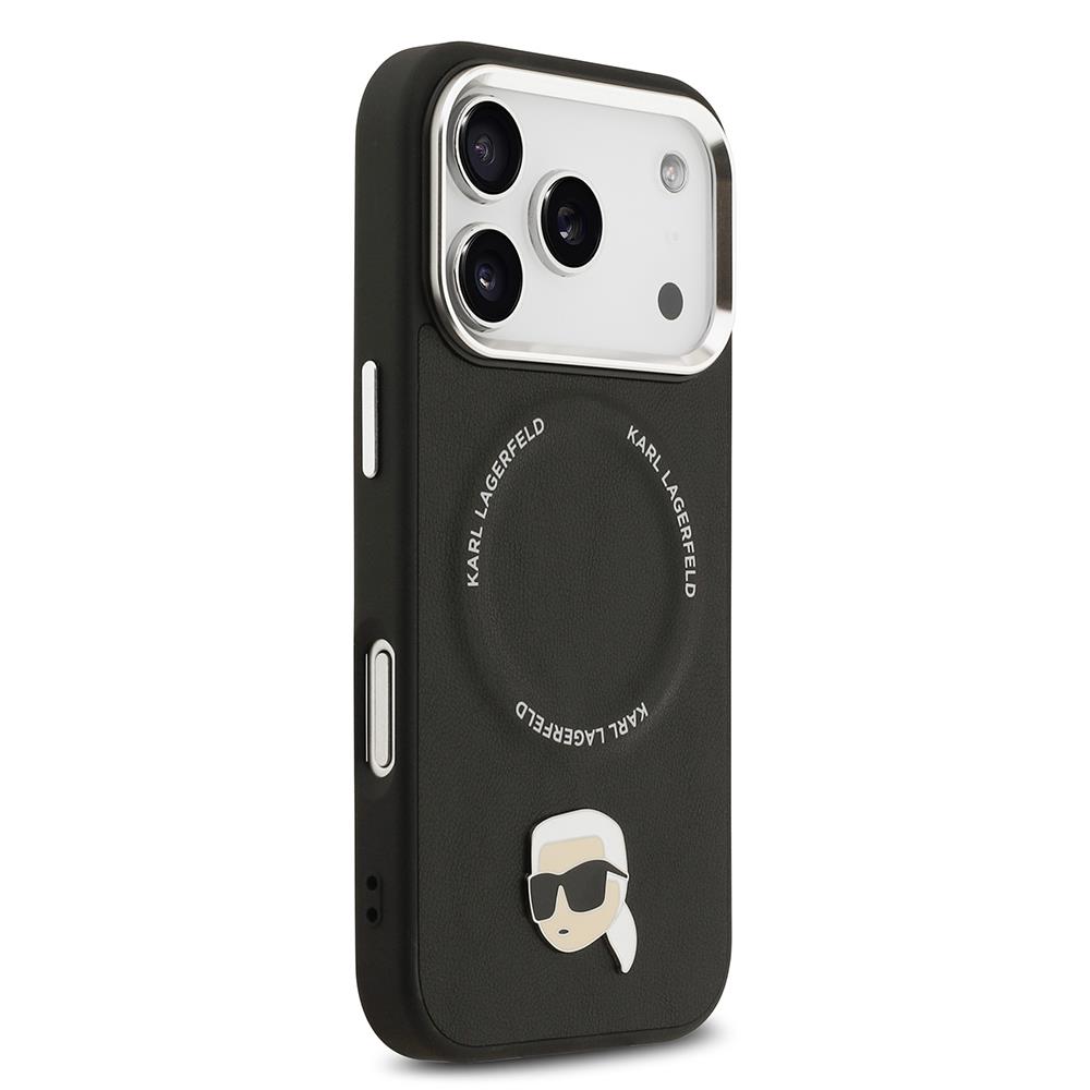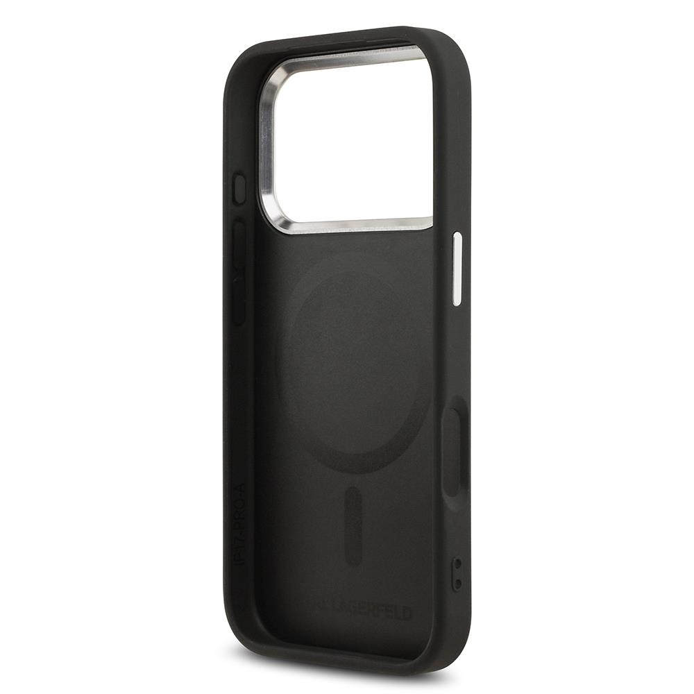 Apple iPhone 17 Pro Kılıf Karl Lagerfeld Orjinal Lisanslı M-safe Şarj Özellikli Metal Kamera ve Buton Tasarımlı Karl PU Deri Kapak