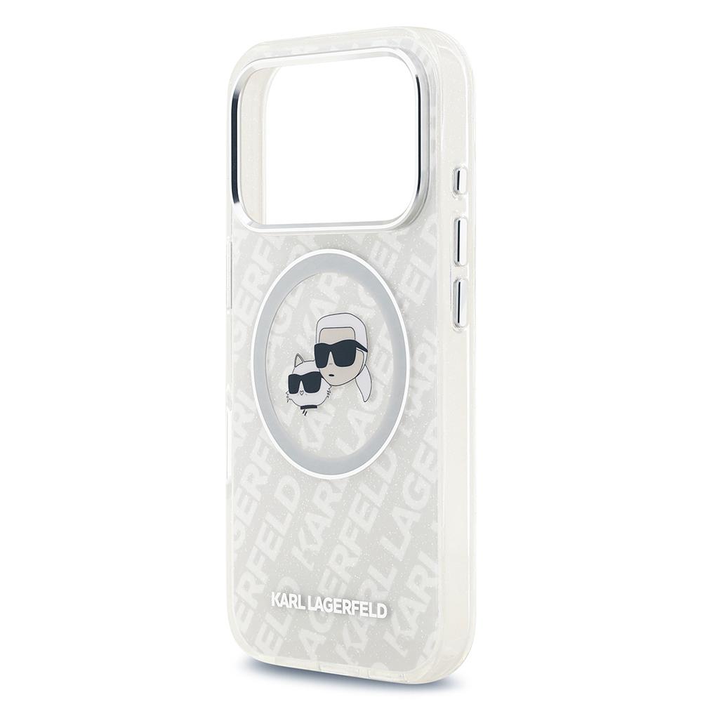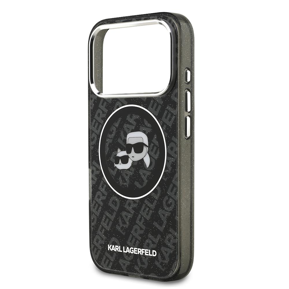 Apple iPhone 17 Pro Kılıf Karl Lagerfeld Orjinal Lisanslı Parlayan Simli Karl & Choupette Heads Kapak